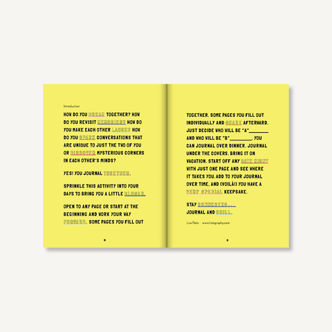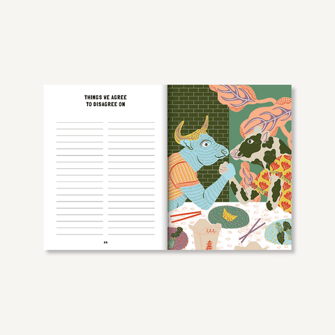 Taking time to journal together is a meaningful way for couples to connect. Designed to spark conversation and intimacy, this illustrated journal features over 75 prompts about your past, present, and future as a couple. From favorite memories" and "what I love about you" to "first impressions of each other" and "things we agree to disagree on, topics are thought-provoking, sweet, humorous, and honest. With a handful of activities and quizzes (drawing amateur portraits, playing Who's More Likely To?), Date Night In offers a fun and accessible way for you to reflect and dream together, and create a lasting and unique keepsake in the process.