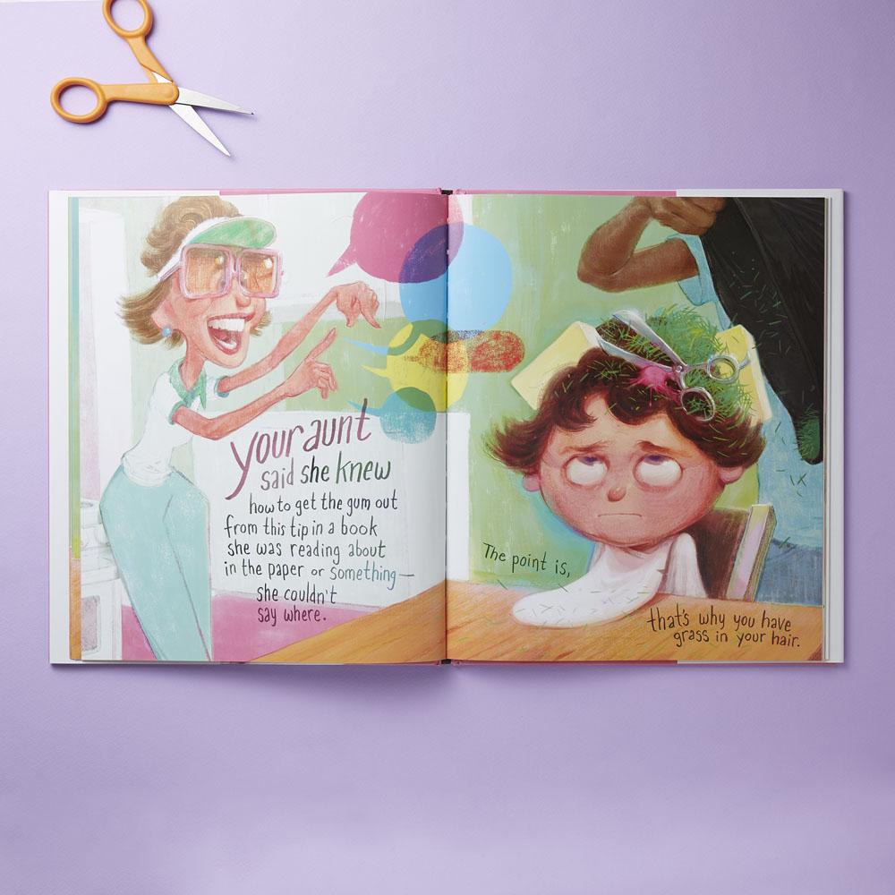 Serious humor abounds in this story about one kid's hilarious misadventures with gum, and the cumulative buildup of stuff stuck in hair.