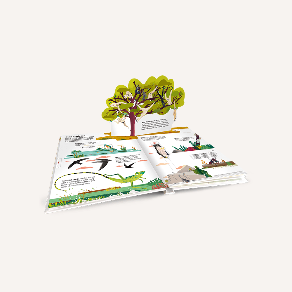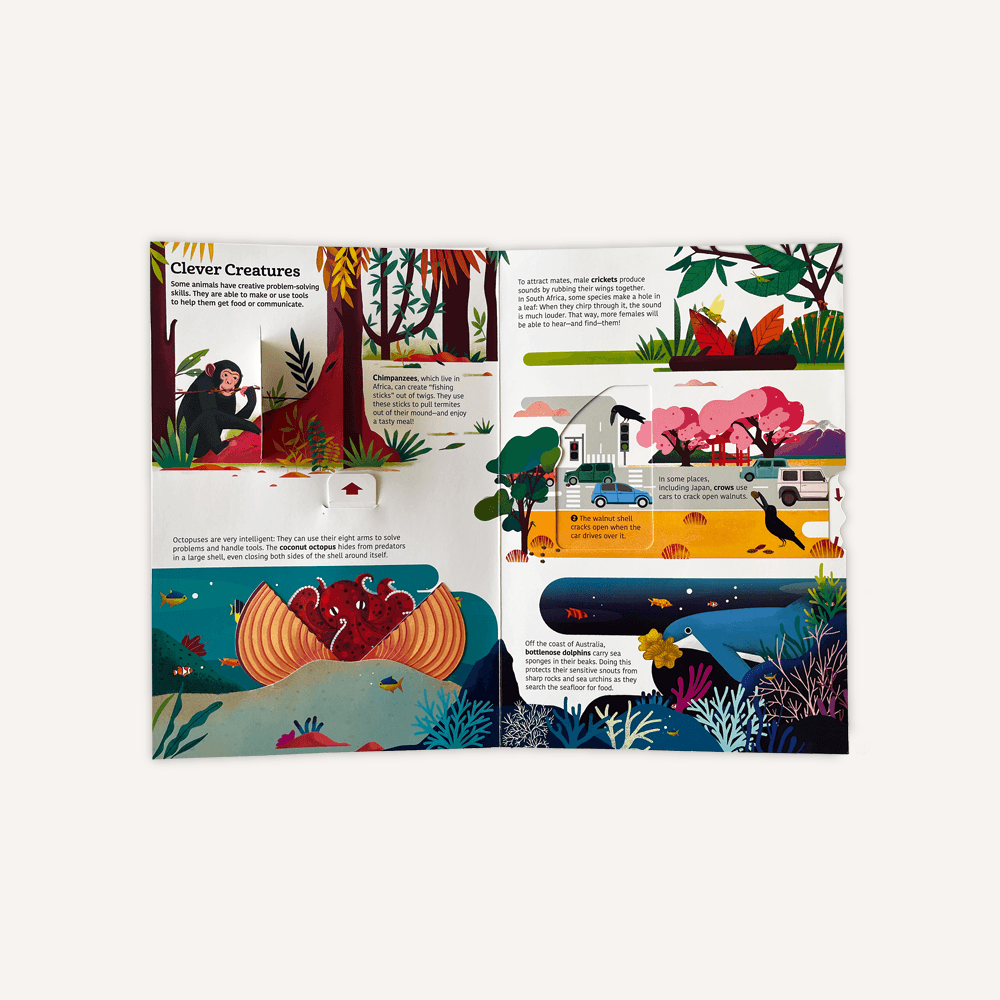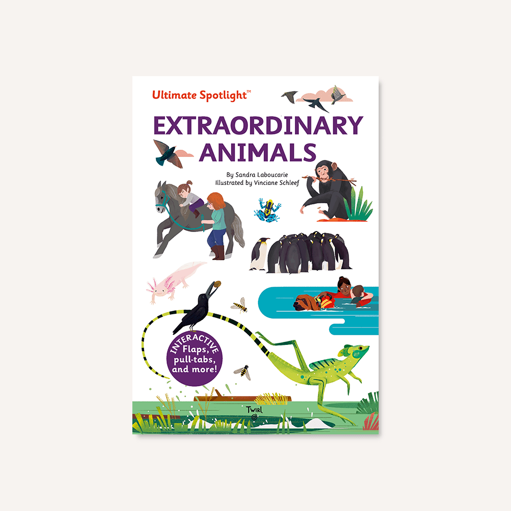 Interactive and engaging, Ultimate Spotlight: Extraordinary Animals gives children a look at the incredible skills of animals. Discover their abilities: Pull a tab to observe how an octopus hides in a large shell, turn a wheel to marvel at the ballet-like gathering of starlings, and lift a flap to reveal the chimpanzee’s secret trick to catching ants.