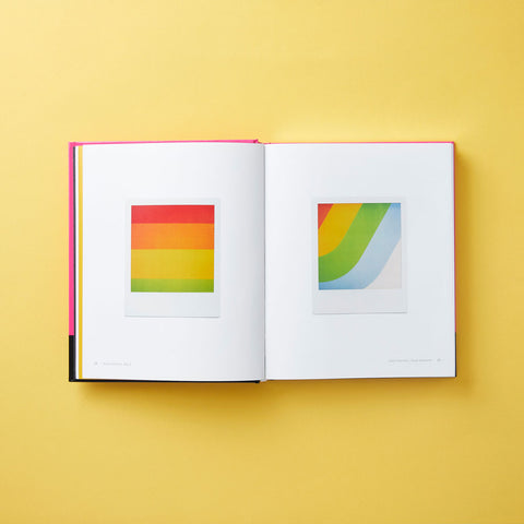 • The cover of the book features a design that is reminiscent of the vintage Polaroid Colorpack Film boxes.