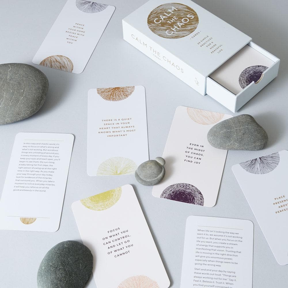 For anyone overwhelmed by the stresses of daily life, this deck is a simple tool to promote calm and well-being. Here are 65 soothing cards, each featuring an encouraging mantra on the front and a short practice on the back, including exercises for mindfulness, self-care, awareness, grounding, gratitude, and more. Users can pull one card each morning to center themselves, or pick a few at a time to set a bigger intention for the week. Presented in a lovely portable package with foil stamping, Calm the Chaos Cards make it easy to foster moments of peace and clarity, anytime and anywhere.