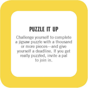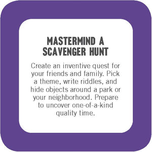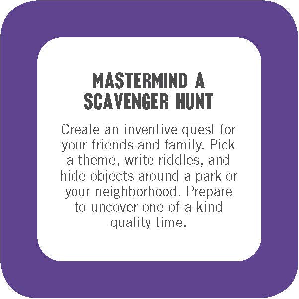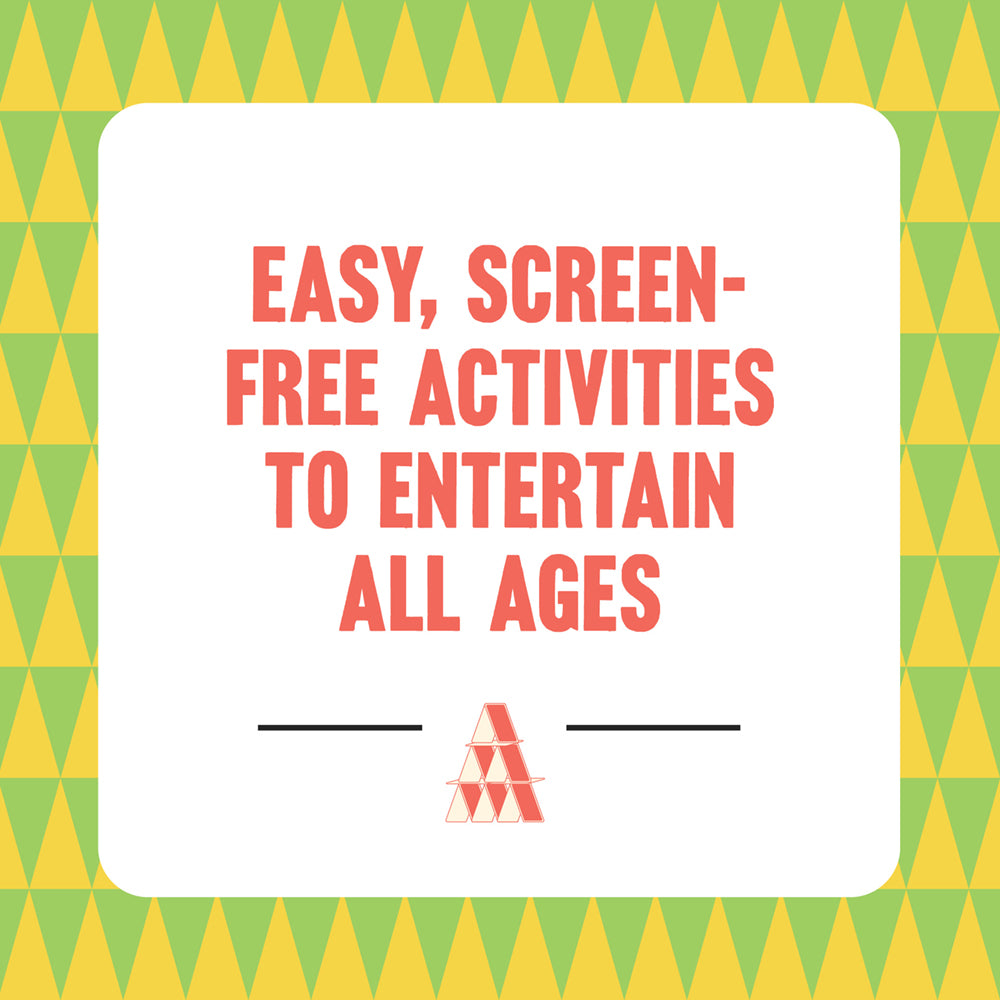 A deck full of suggestions for offline, screen-free entertainment: From outdoor activities to staycation fun to ideas for going out for fun with friends, this deck offers a variety of ways to stay entertained without needing to check your phone or even bring it with you!