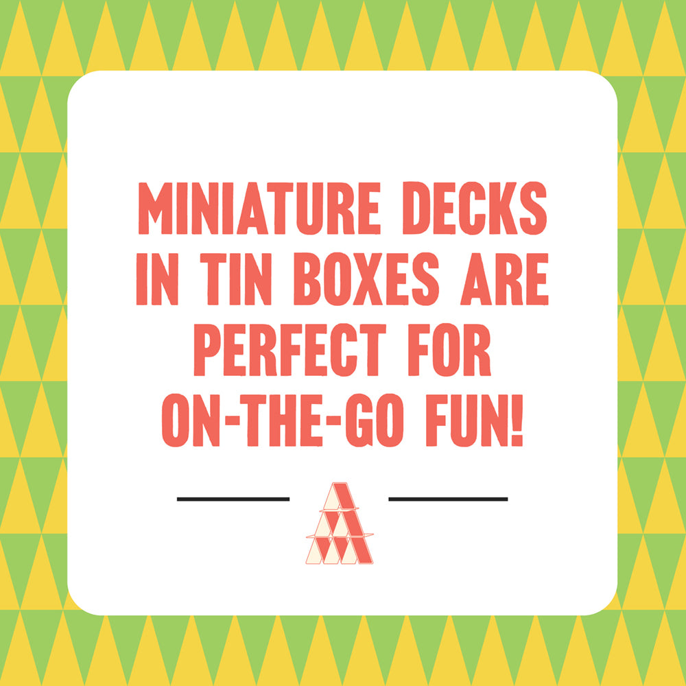 HANDY PORTABLE SIZE: The compact format lets you take the deck anywhere! These petite tins are perfect for slipping into a purse or pocket for on-the-go fun.