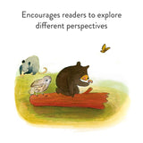 - TEACHES COMPARISONS: The idea of seeing through the animal's eyes by comparing themselves to familiar ideas (cub is bigger than rabbit but smaller than mama bear) is a perfect introduction to comparative logic.
