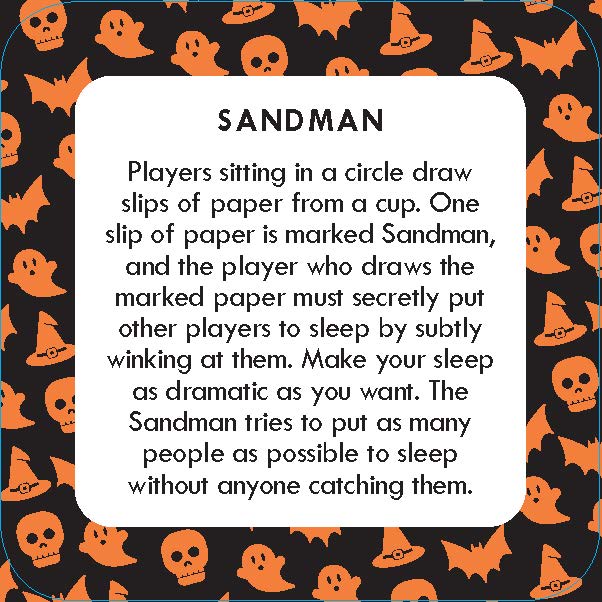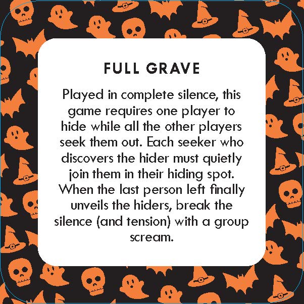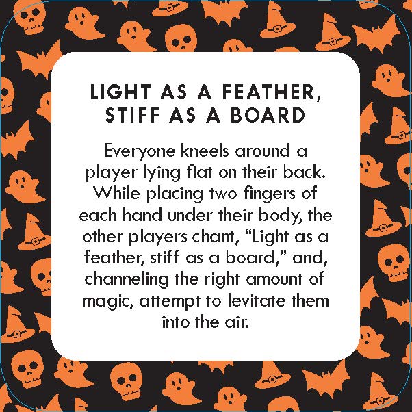 Prepare to scare yourself silly with the 50 easy-to-play games in this take-anywhere tin. Activities range from classics like “Light as a Feather, Stiff as a Board” to new offerings like “Tarot Charades,” “Pass the Possession,” or “Frankenstory.”