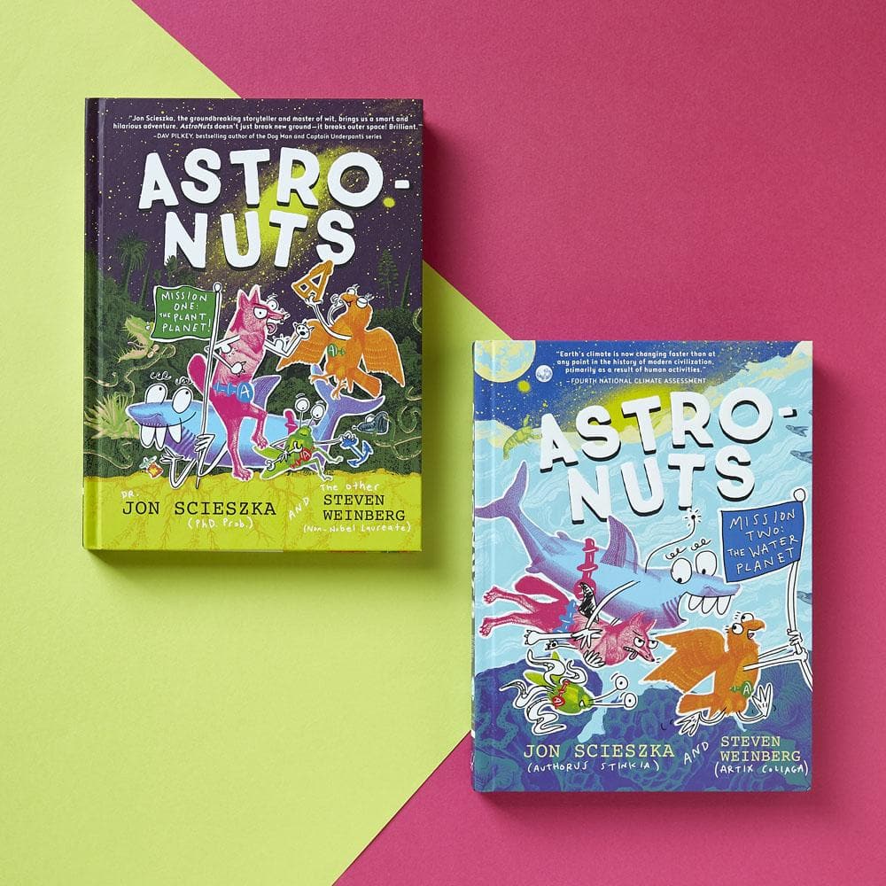 This laugh-out-loud, visually groundbreaking read launches a major new series by children's literature legend Jon Scieszka. Featuring full-color illustrations throughout, a spectacular gatefold, plus how-to-draw pages in the back, it's an outer space adventure that demonstrates a giant leap for bookmaking and a giant leap for any kid looking for their next go-to series. AstroWolf, LaserShark, SmartHawk, and StinkBug are animals that have been hybridized to find other planets for humans to live on once we've ruined Earth. So off they rocket to the Plant Planet! Will that planet support human life? Or do Plant Planet's inhabitants have a more sinister plan? AstroNuts Mission One is a can't-put-it-down page-turner for reluctant readers and fans ready to blast past Wimpy Kid.