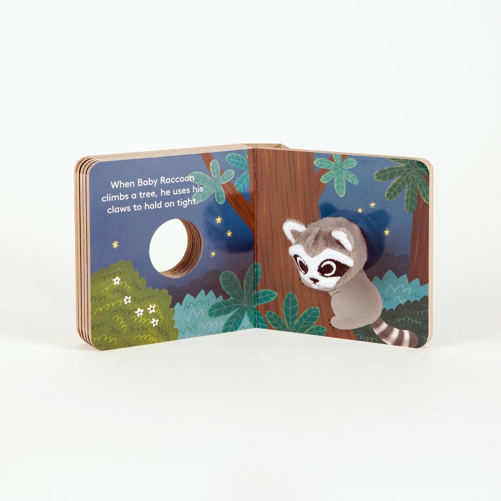 Baby Raccoon Finger Puppet Book is a sweet, entertaining board book with a finger puppet built right in.