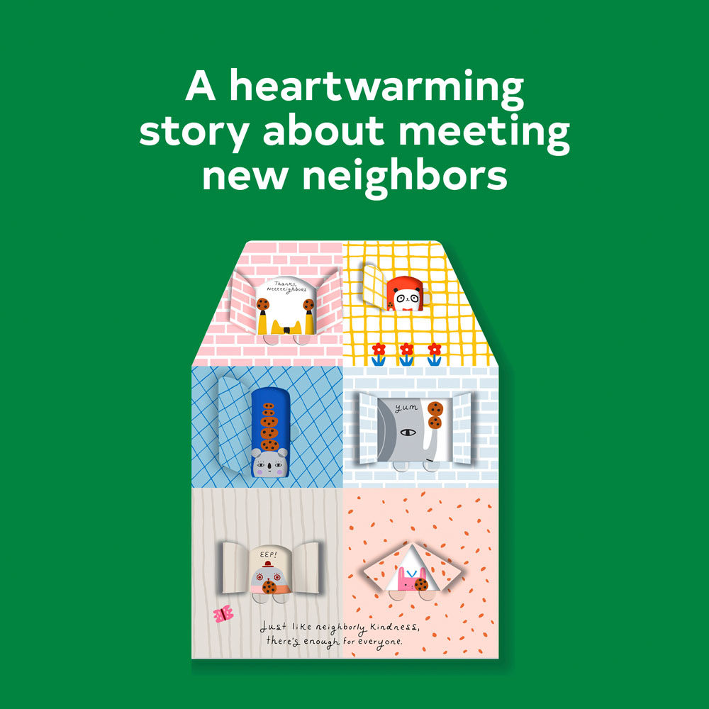 - WELCOMING MESSAGE ABOUT COMMUNITY: The new family on the block goes door-to-door getting to know their neighbors, borrowing cookie ingredients, and eventually delivering cookies. At a time when neighborhood communities are more essential than ever, this is a much-needed story about community, generosity, how to give and how to receive, how to come together, and how to welcome someone new.