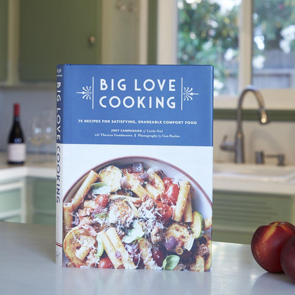"Big Love Cooking comes from Joey Campanaro, the chef behind Little Owl in New York City, and it’s packed with 75 recipes 'infused with Mediterranean flavors inspired by Joey's Italian-American family,' including some family recipes and Little Owl dishes as well."