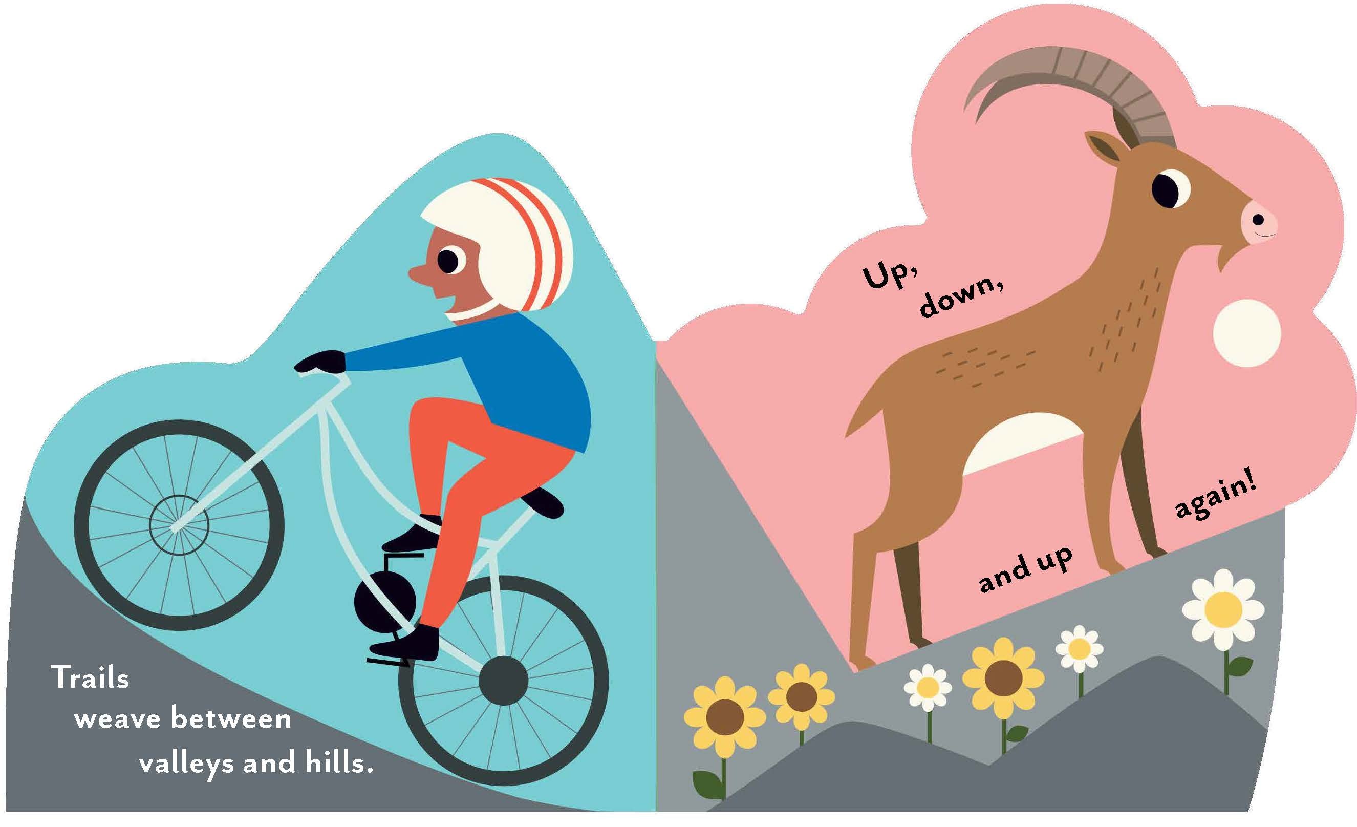 Hike beside mountain lakes, pedal down rocky hillsides, and swoop across snowy ski slopes in this one-of-a-kind board book by celebrated illustrator Ingela P Arrhenius. Each uniquely shaped page overlaps with the next to create a complete landscape when closed—and an immersive world to explore when open. Simple text and vibrant illustrations introduce babies and toddlers to the many ways of enjoying time in nature. Delightfully petite, Bookscape Board Books' chunkiness and unique layers give them a tactile, toylike quality that begs to be picked up—making each book in the series a memorable and irresistible gift.