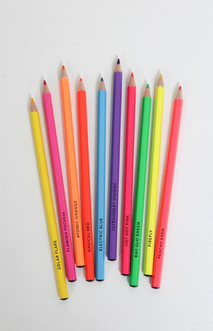 This set of stylishly designed neon colored pencils is sure to unleash the imagination of any coloring book fan. With rich, smooth, and brilliant color– perfect for shading and blending– these pencils will add pizzazz to any creative project. The 10 pencils are pre-sharpened and packaged in a sleek and sturdy case, easy to carry with you to any place where inspiration may strike! The premium colored lead in these pencils is very soft. For best results, please use a manual sharpener.