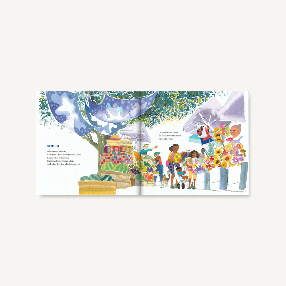 "Following an earlier, similarly structured collaboration by this team (Follow the Moon Home) about a child gaining self-assurance while working on an environmental project, Hopkinson and So introduce a brown-skinned girl whose confidence grows as she organizes her class to start a milkweed garden for migrating monarchs. . . . So’s delicate mixed-media drawings capture the girl’s classmates and portrays the protagonist as she journeys from lonely newcomer to poised leader."