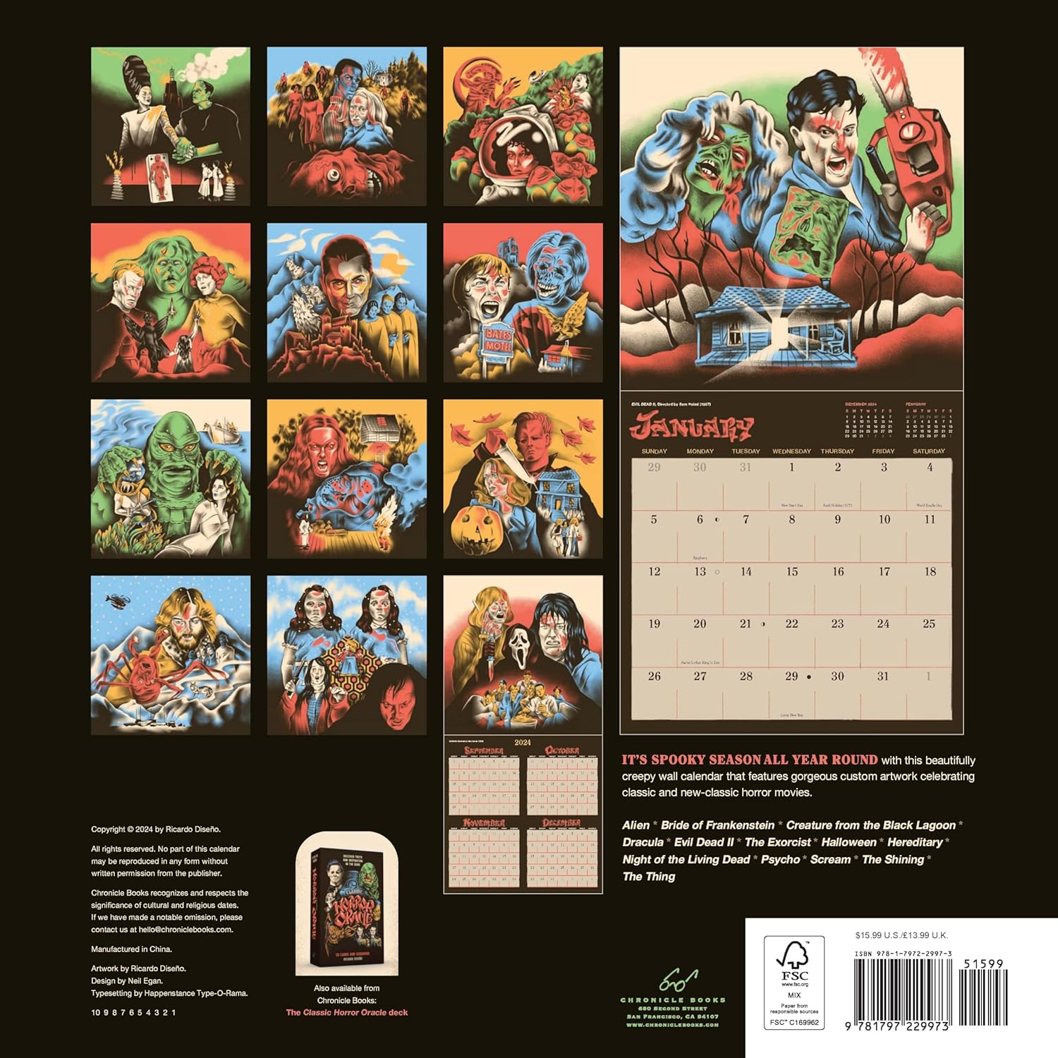 It’s spooky season all year round with this beautifully creepy wall calendar featuring gorgeous custom artwork that celebrates classic and new-classic horror movies. From genre-defining films like the original Halloween and Night of the Living De...