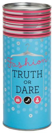 The secret ingredient for a successful slumber party: Truth or Dare! The popular party game staple "Truth or Dare" gets a chic makeover in this fashion-focused game for tweens and teens, featuring 40 "truths" and 40 "dares" relating to fashion confessions, wardrobe malfunctions, and style aspirations. Select a "truth" and tell all: Reveal style secrets, unfashionable moments, ideal outfits, and more. For "dares," make memorable embarrassing moments by wearing unwearable styles for an hour and reenacting fashion faux pas. It's the perfect party accessory!