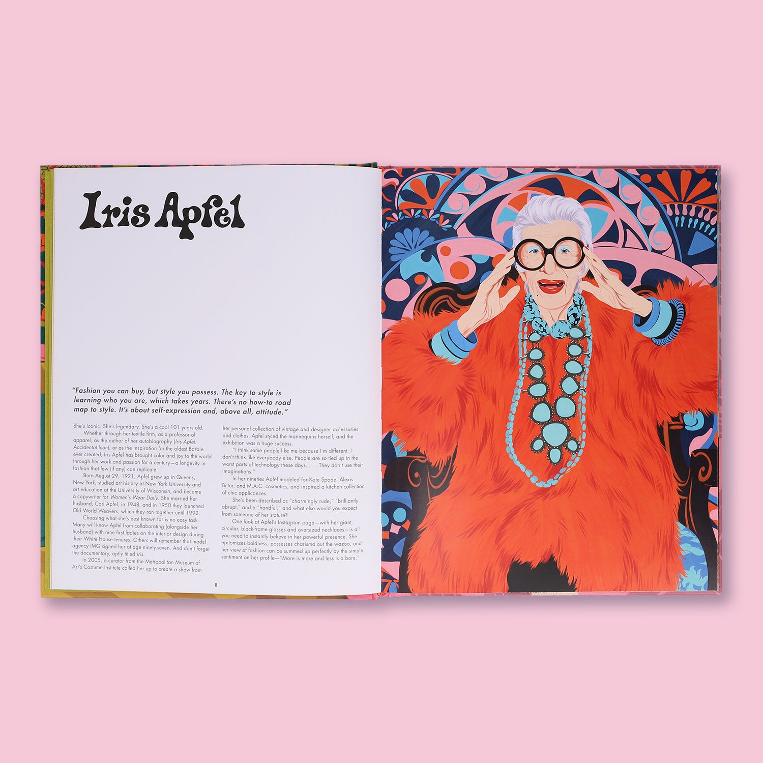 Each colorful and detailed portrait evokes the distinct sensibility of the unique and influential icon featured and includes an illuminating bio focusing on the sartorial choices of that legend, rebel, or visionary. Additionally, fashion insider Booth Moore provides an insightful introduction to this curated list of one-of-a-kind style icons.