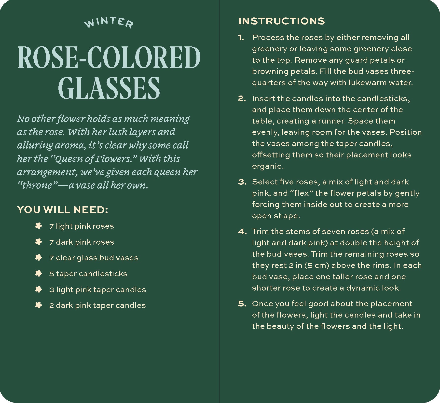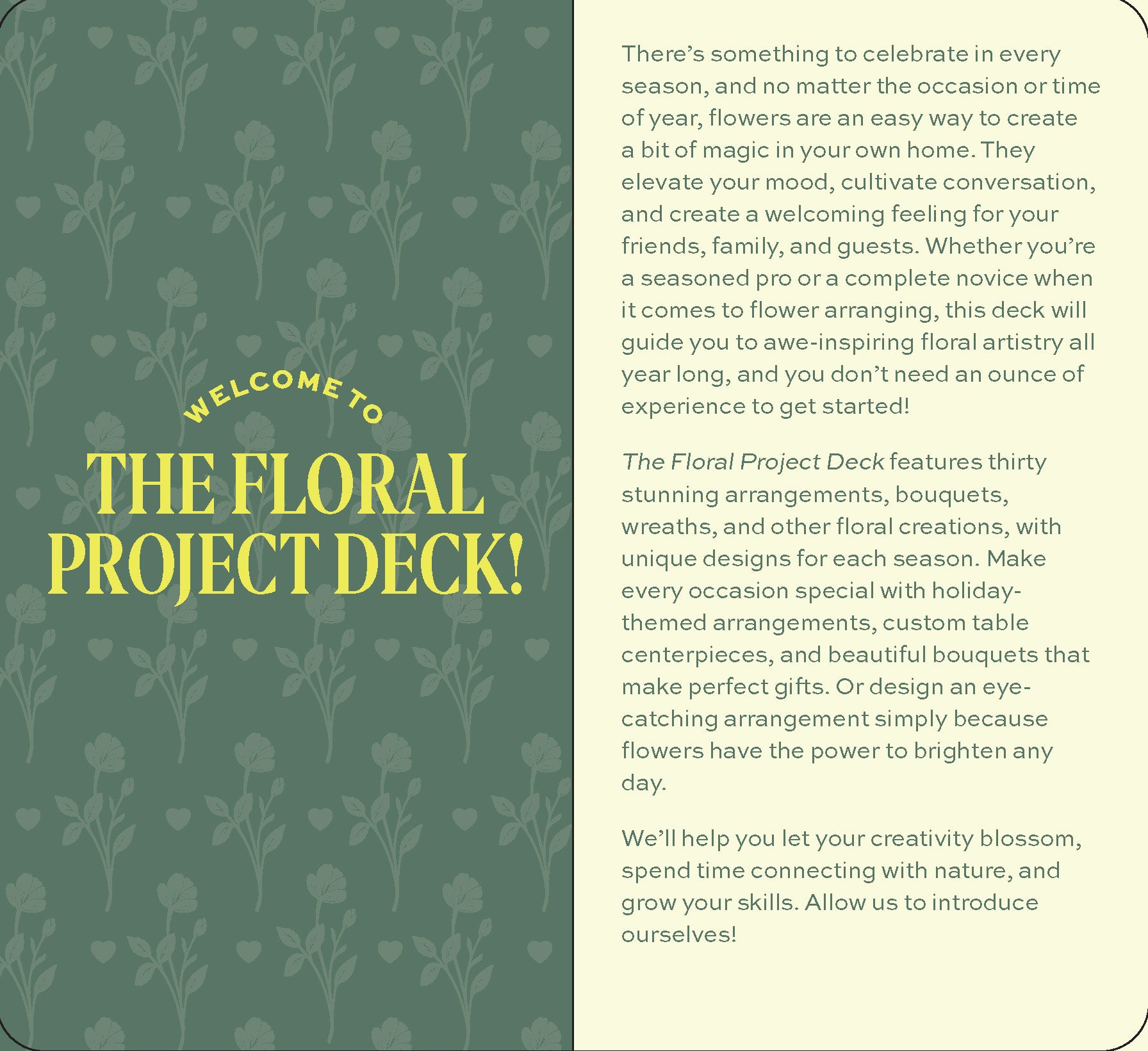 Design stunning floral arrangements for holiday hosting, special occasions, gifting to friends, or simply making any day a little brighter and more beautiful. This easy-to-use deck includes 30 how-to recipe cards for creating gorgeous seasonal arrangements, including: