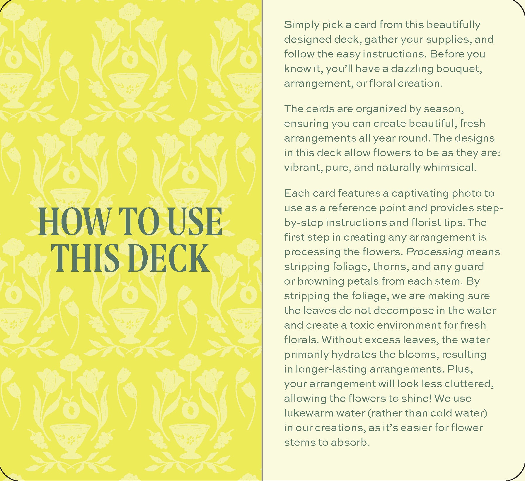 FLOWER ARRANGING FOR ALL: These flower recipes are uncomplicated, and every card provides clear instructions and a photo, ensuring any hobbyist can easily recreate these beautiful bouquets and bundles regardless of skill level.
