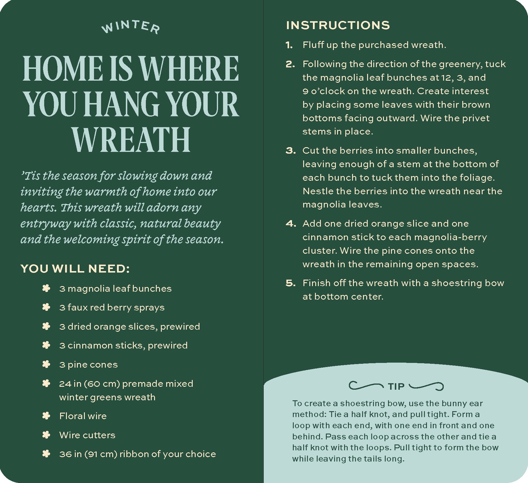 FLORAL ART THROUGHOUT THE YEAR: A simmer pot to welcome the new year, a pastel bouquet for Mother's Day, a charming flower crown to mark the summer solstice, a colorful kale autumnal centerpiece, a festive holiday wreath: These 30 floral projects incorporate seasonal blooms, ensuring you have a gorgeous arrangement for every time of year.