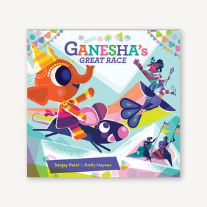 In Sanjay Patel's world, the bold, bright colors of India leap off the page and screen. Ganesha's Sweet Tooth introduced a fresh and funny picture book retelling of how Ganesha came to help write the epic poem of Hindu literature, the Mahabharata. Now Ganesha is back in a delightful new adventure!