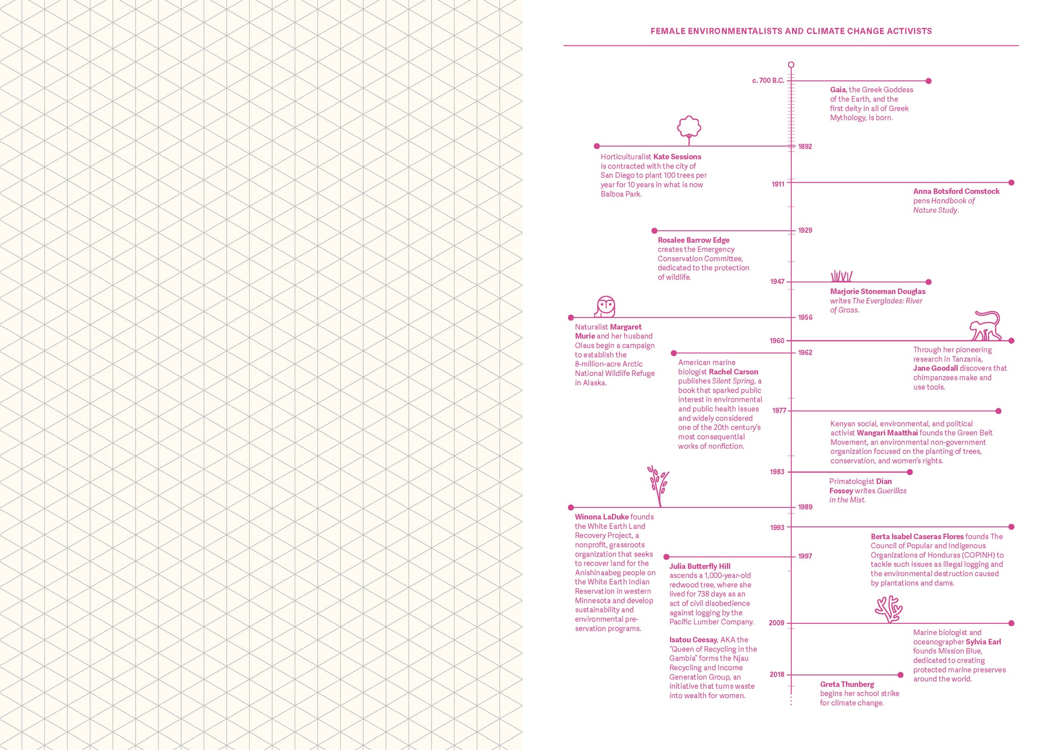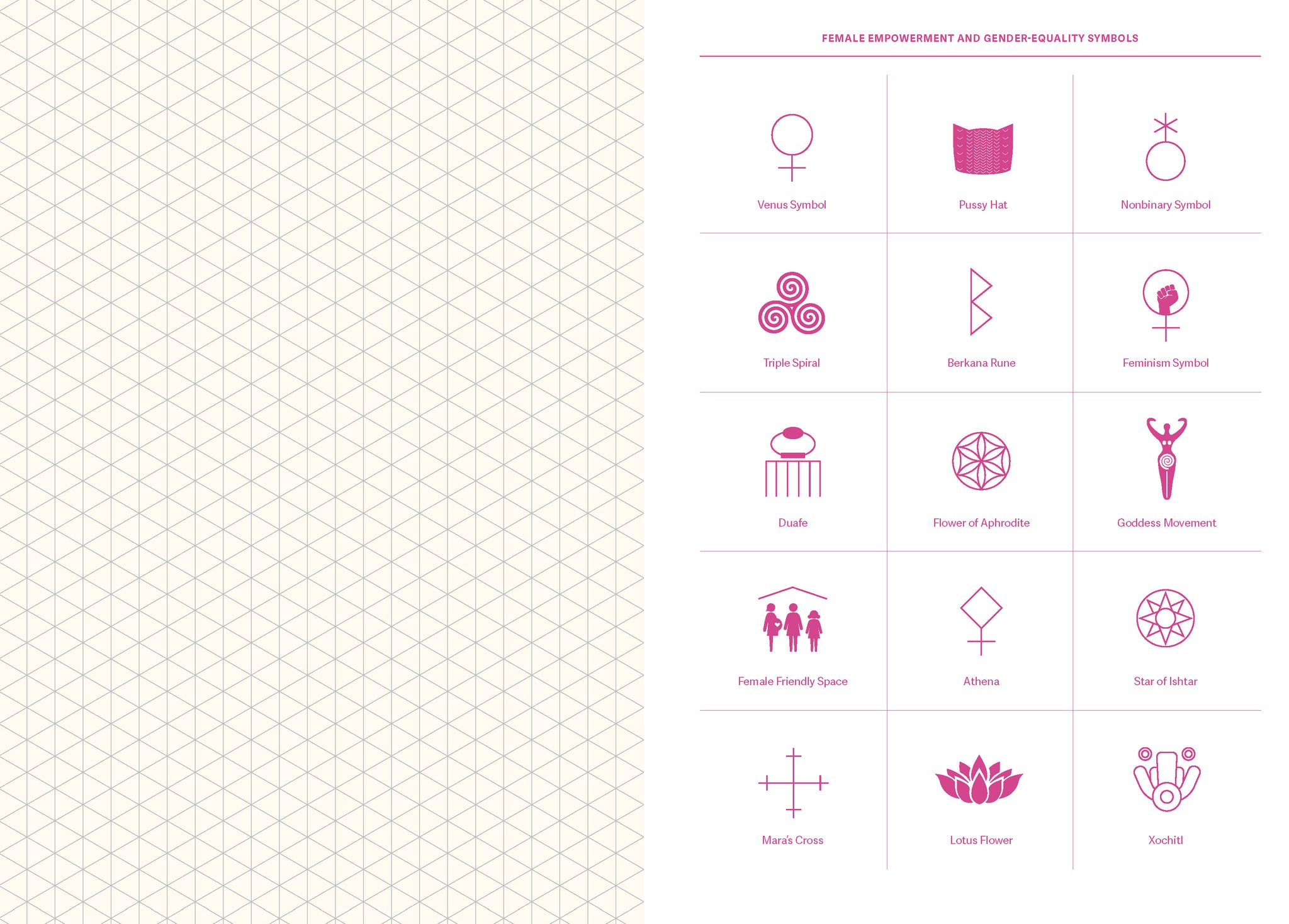 Interspersed with infographics: Find inspiration in the cool infographics interspersed throughout the notebook. Unexpected and informative, the notebook includes eight pages of charts, infographics, tables, and other scientific resources covering a wide range of topics, from drawings of pioneering patents held by women to an overview of female empowerment symbols.