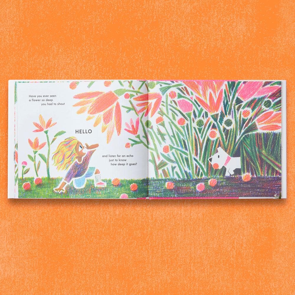 "The text takes readers on an imaginative journey inside flowers, activating all the senses and gradually thinning the distance between the human body and nature, until the two become one. . . . [A]stounding, dense colored-pencil illustrations [extend] to the metaphoric text, which reaches for an odd sort of physical intimacy with the reader. Creative, dazzling, and fearless, Harris’ authorial debut marks an auspicious start to his picture-book career."