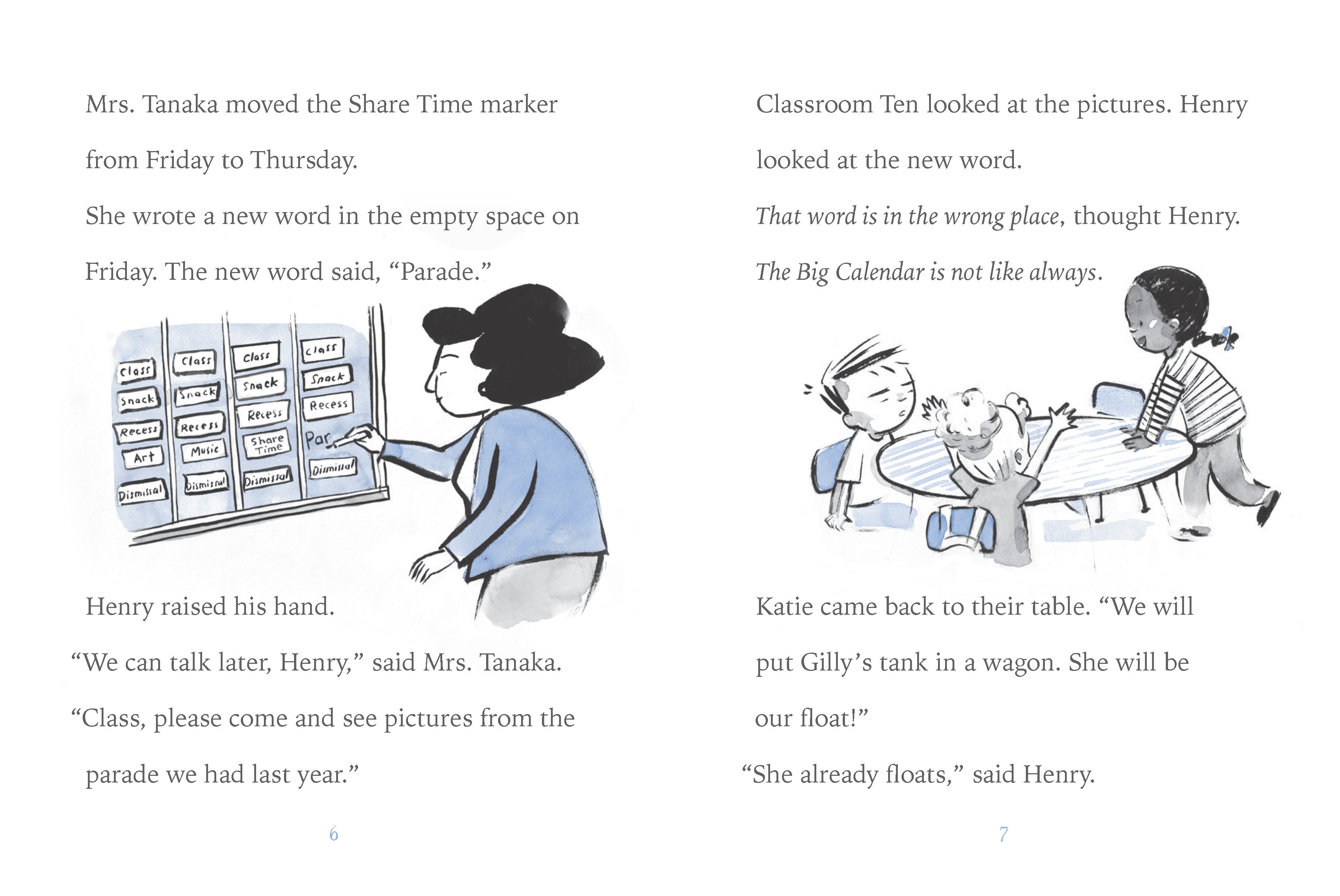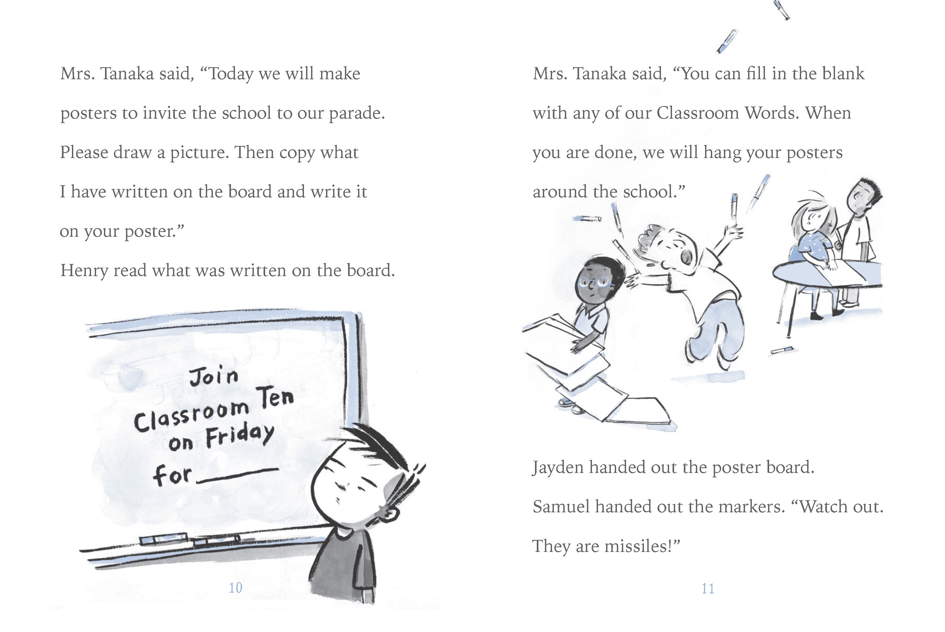Henry likes Classroom Ten. He likes how it is always the same. But this week, Henry's class will have a parade, and a parade means having Share Time on the wrong day. A parade means playing instruments that are too loud. A parade means this week is not like always.