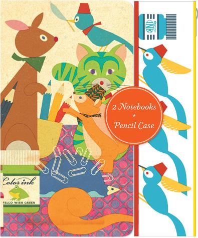 Showcasing artist Junzo Terada's imaginative animals, this set includes two different side-stitched paperback notebooks, plus a vinyl pencil pouch with zip-top closure alongside. Perfect for on-the-go creativity or as a desktop accessory!