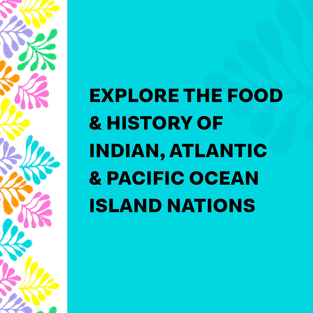 The islands spanning the Indian, Atlantic, and Pacific Oceans are remarkable places, sharing dozens of ingredients and cooking techniques, including marinating, pickling and fermentation, braising and stewing, frying, grilling and smoking, and steaming and in-ground roasting. Bold flavors drip from the edges of each dish with tastes that represent stories of resistance, persistence, and wisdom passed down from generation to generation.