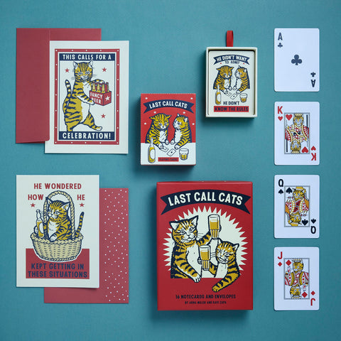 • UNIQUE DESIGNS: Playful illustrations by Arna Miller and Ravi Zupa feature bar-crawling cats, originally designed for a bestselling series of block printed matchboxes, as seen on Bored Panda, Colossal, My Modern Met, and more. Each notecard features a unique piece of artwork, with four brand new designs, printed on luxe cardstock.