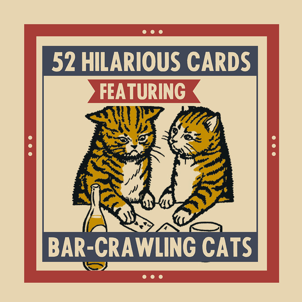 • UNIQUE DESIGNS: This hilarious deck features bar-crawling cats, designed by artists Arna Miller and Ravi Zupa, based on their bestselling series of block printed matchboxes, as seen on Bored Panda, Colossal, My Modern Met, and more.