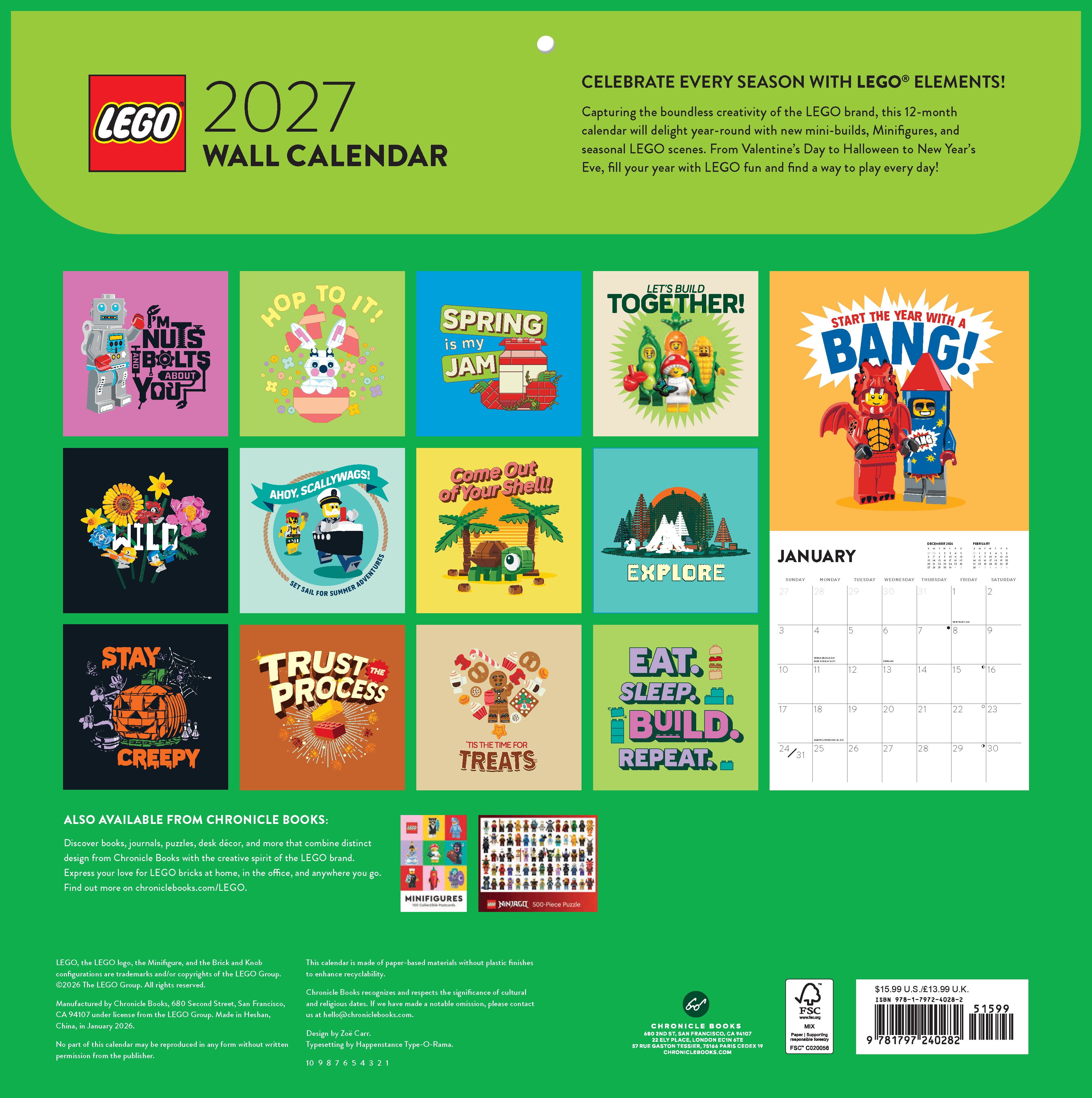 Capturing the boundless creativity of the LEGO brand, this twelve-month wall calendar will delight year-round with new mini-builds and seasonal LEGO scenes. Fill your year with bold LEGO colors and find a way to play every day!