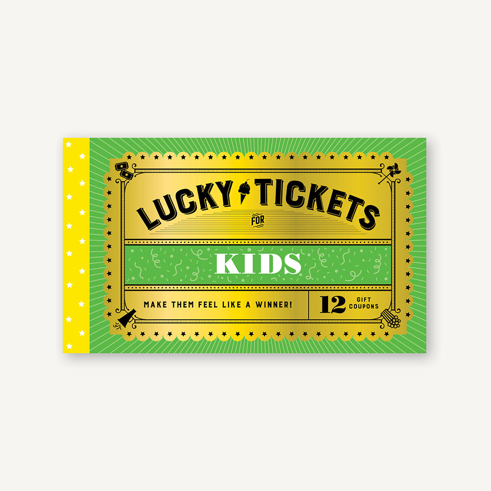 The twelve shining tickets inside this booklet are a kid's dream come true, redeemable for fun surprises like dessert for breakfast or an escape from chores for a day. Each ticket is decked out with the magic of gold foil, and there's even a blank ticket to customize with a personalized gift. Easy to slip into a card, lunchbox, or pocket, these gilded tickets are a perfect way to make kids feel special on any occasion.