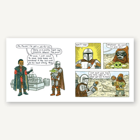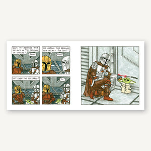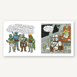 Brown’s colorful all-ages style and spin complement the show’s gritty milieu while accentuating the sweetness of the found family at the heart of the story. His unexpectedly funny touches and twists, and lighthearted interpretations of favorite characters, including Bo-Katan, Moff Gideon, The Armorer, Luke Skywalker, Ahsoka Tano, IG-11, Peli Motto, and many more, will thrill fans and give them a way to appreciate all three seasons of the show in a whole new way.