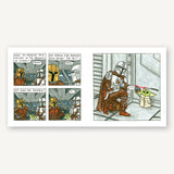 THE PERFECT SUBJECT FOR JEFFREY BROWN: The Mandalorian’s relationship with the child is the perfect playground for Brown’s charming take on fatherhood. Like Brown’s Darth Vader, Mando is a brooding, serious, masked character with a dark past, but he opens up to the joys of found fatherhood in the presence of Grogu.