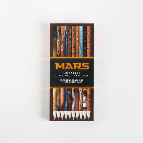 10 metallic colored pencils feature foil-stamped labels for Red Planet exploration and identification.