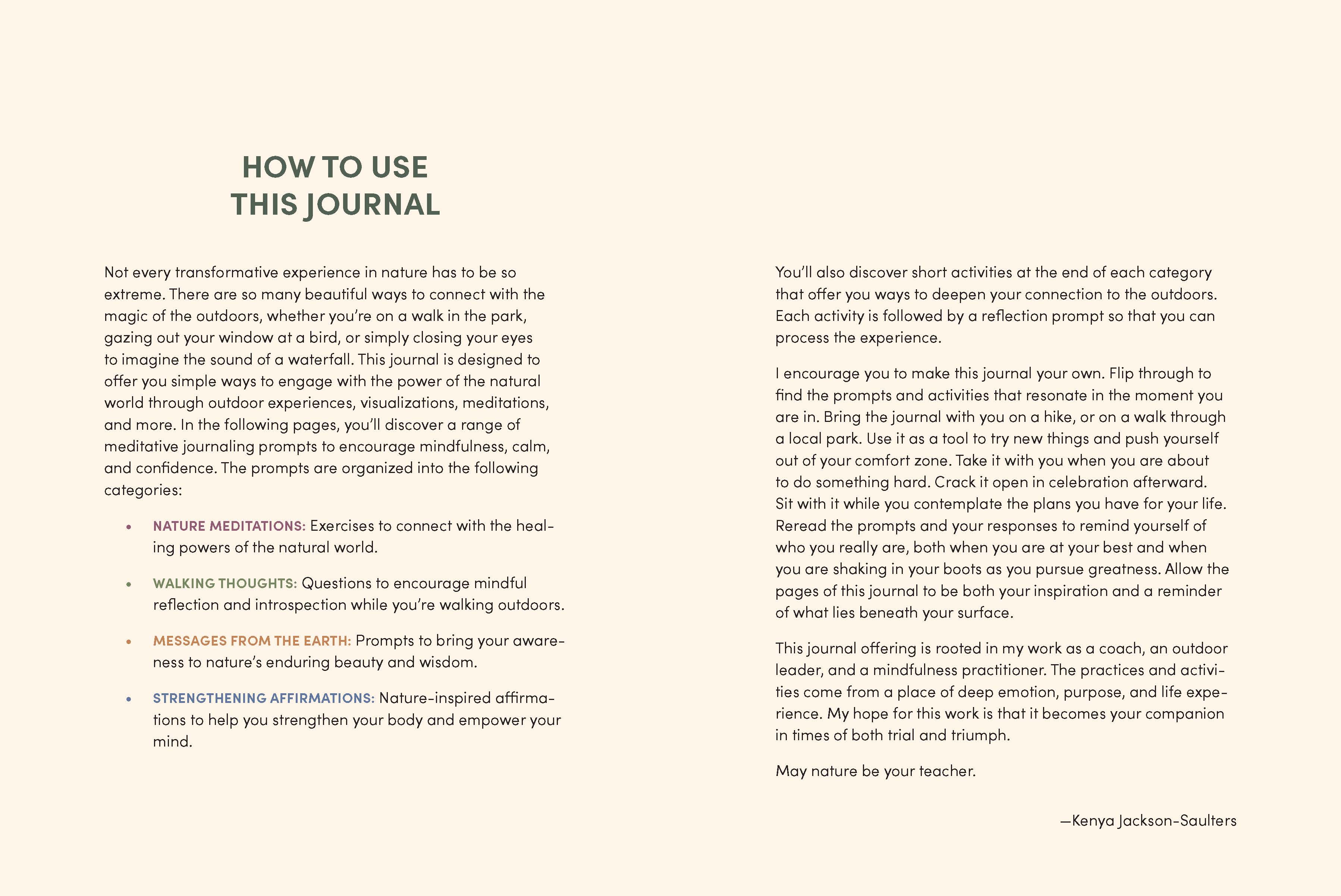 - Devotees of Kenya Jackson-Saulters's Nature Meditations Deck and Outdoor Journal Tour organization