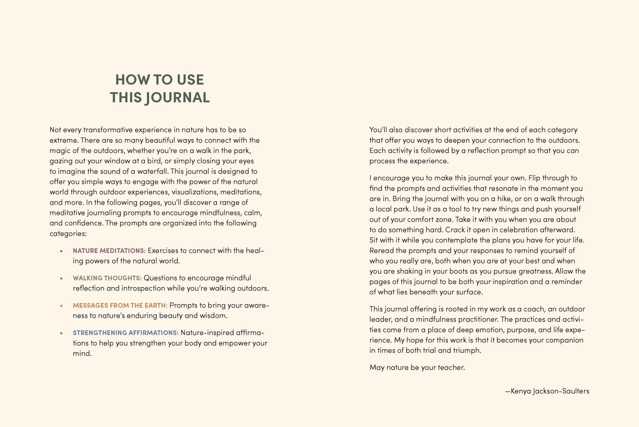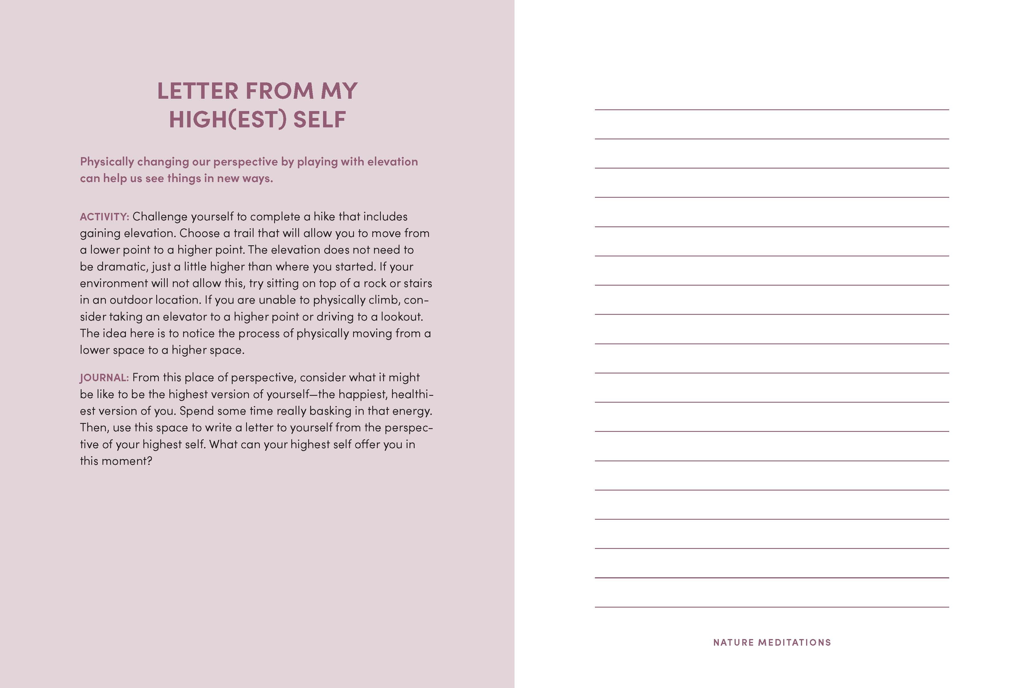 NATURE AT YOUR FINGERTIPS: This journal makes it easy to engage with the natural world through bite-sized meditations and visualizations. Whether in a backyard, visiting a local park, or deep in the forest, this journal offers simple ways to access the healing energy of the outdoors.