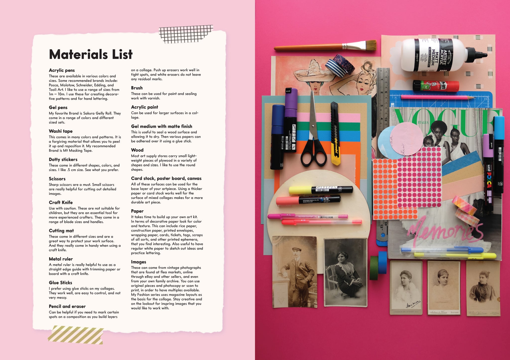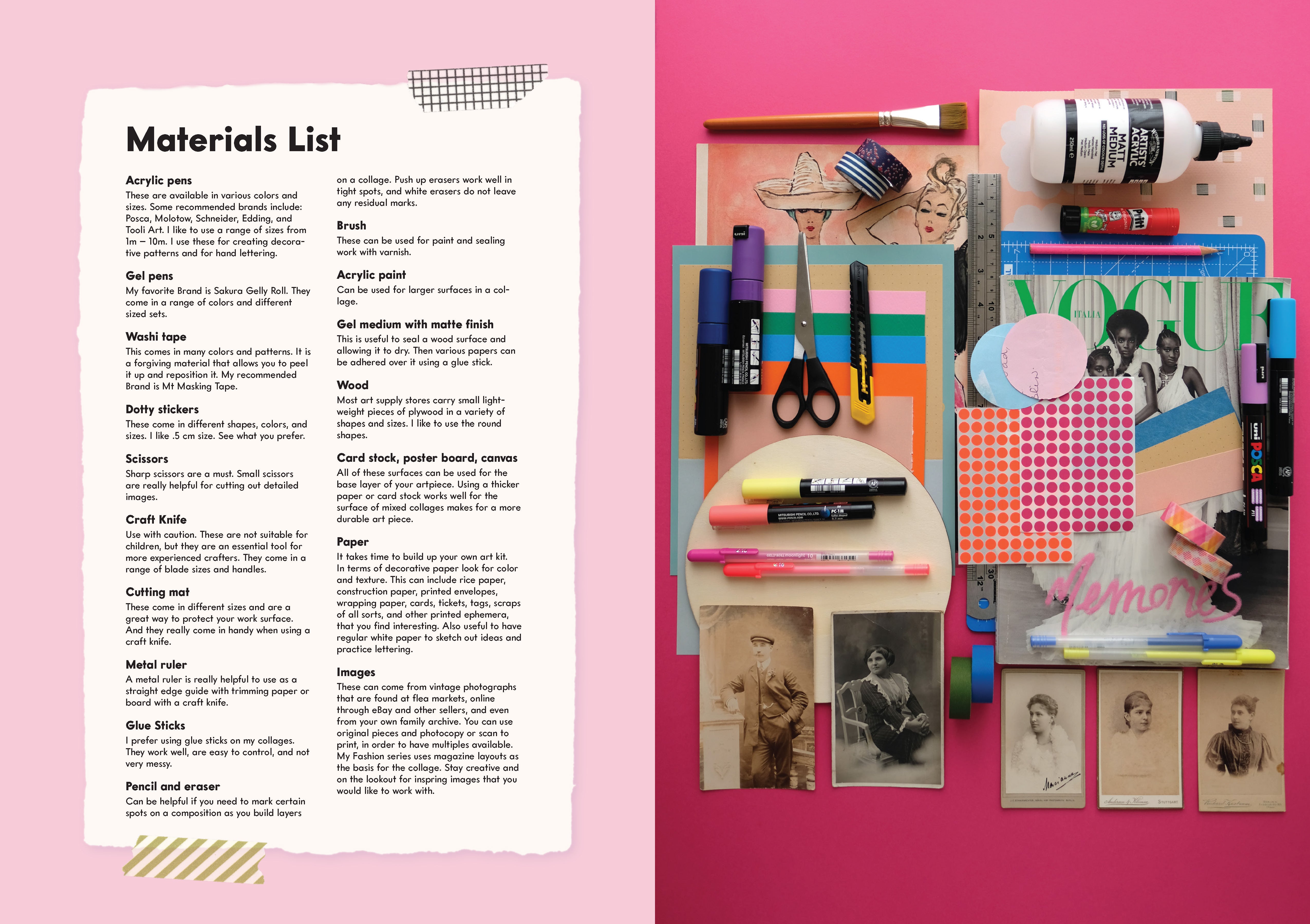 - Individual sections include building your own art kit; working with fashion magazine images, mixed media, vintage photos, and ephemera; and creating your own abstract art pieces.