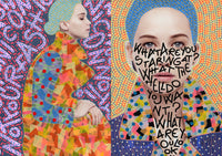 Vona is widely known for her inspiring collages that transform fashion magazine ads into feminist art pieces, questioning conventional notions of beauty and the overwhelming consumerism that supports them. Through paint, collage, and hand-lettered text, Vona creates her own artistic beauty that is subversive, detailed, colorful, patterned, layered, and visually bold.