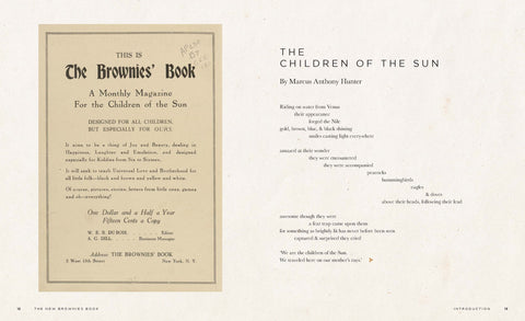 IMPORTANT HISTORICAL LEGACY: In 1920, W. E. B. Du Bois and the founders of the NAACP published The Brownies' Book: A Monthly Magazine for Children of the Sun, which included art, stories, letters, and activities to inspire children, share Black history, and celebrate their identities. As the first periodical for African American youth, this was an important work in the history of children's literature. The New Brownies' Book revives its mission to inspire the young readers of today.