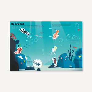Forty-five magnetic pieces provide kids with lots of fun—and knowledge—that they can use to fill five dramatic oversized scenes. This all-in-one playset includes fascinating information, just right for its audience, about activities in and around the ocean, marine animals, and much more! It's the perfect travel and take-along book for young readers.