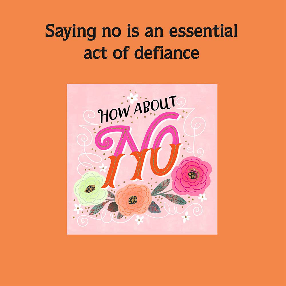 GUIDE TO SELF-EMPOWERMENT: Saying no is an essential act of defiance. It's what allows us to set boundaries and take control of our own lives. This book celebrates that in a way that is fun, edgy, and empowering.