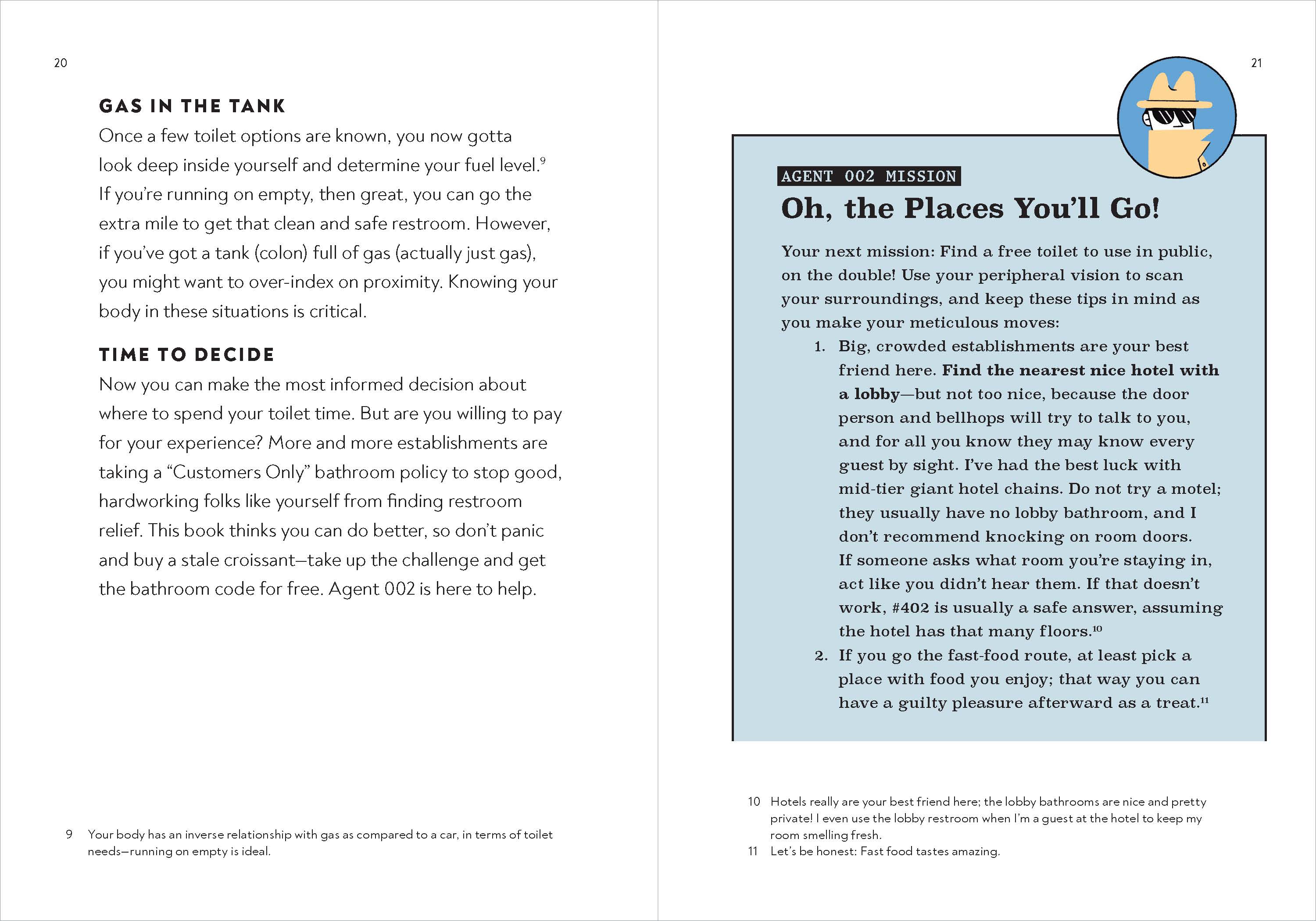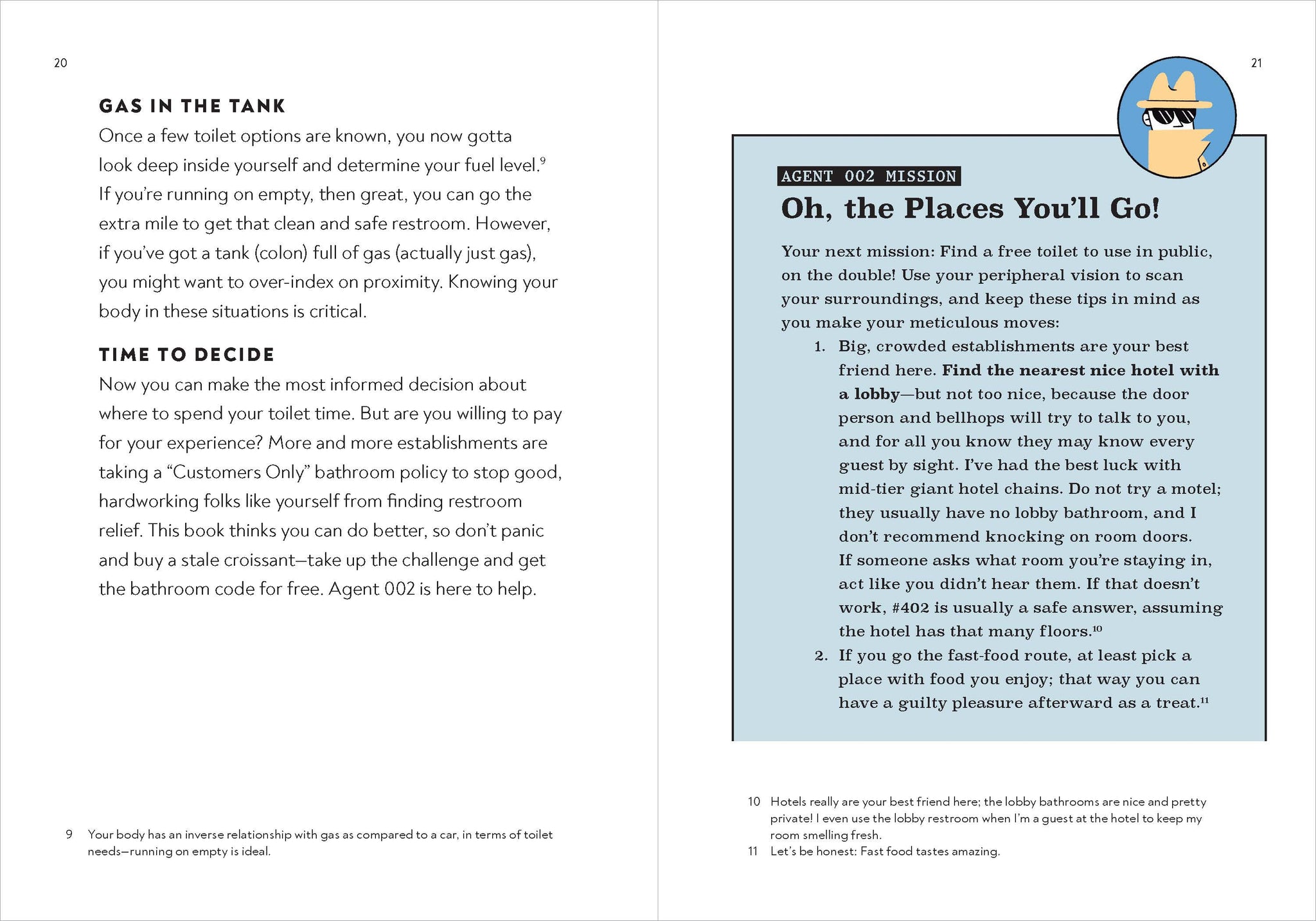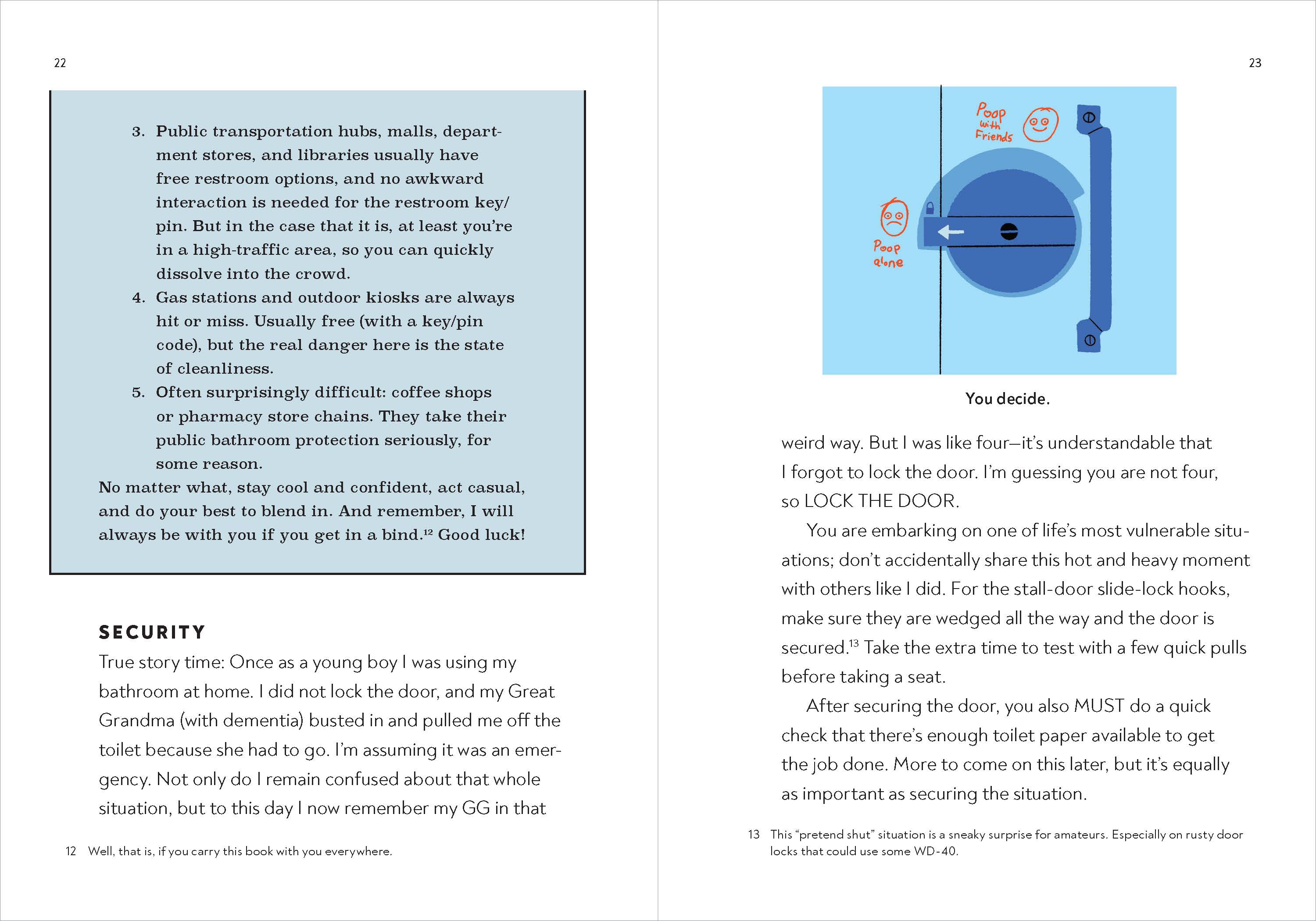 We’ve all been there and will be back again. This very funny and actually useful guide will help you make your time in the loo more comfortable, entertaining, and even fun. Out-and-about advice includes finding and navigating public restrooms, strategies for pit stops at school, in the office, or at other people’s houses, as well as special circumstances (in a porta-potty, in the woods, in outer space). Tips for optimizing your throne room at home feature playlists, dream décor, scent-sory suggestions, get-things-moving exercises, and toilet tech explorations (flush into the future). Also featuring a Things to Do While You Poo activities section, sidebar trivia from Plungie the Plunger, and reader missions to accomplish from Agent 002, this is the must-have companion for anyone’s time behind closed doors.