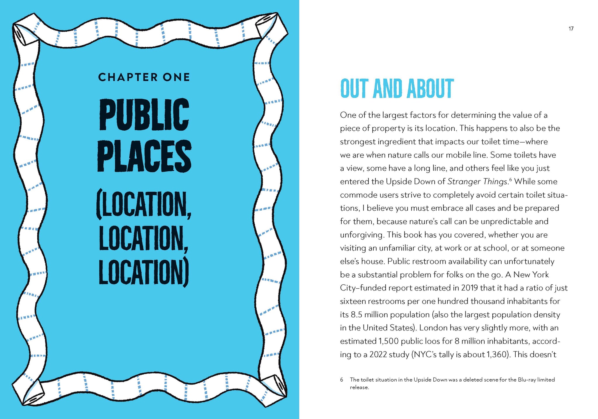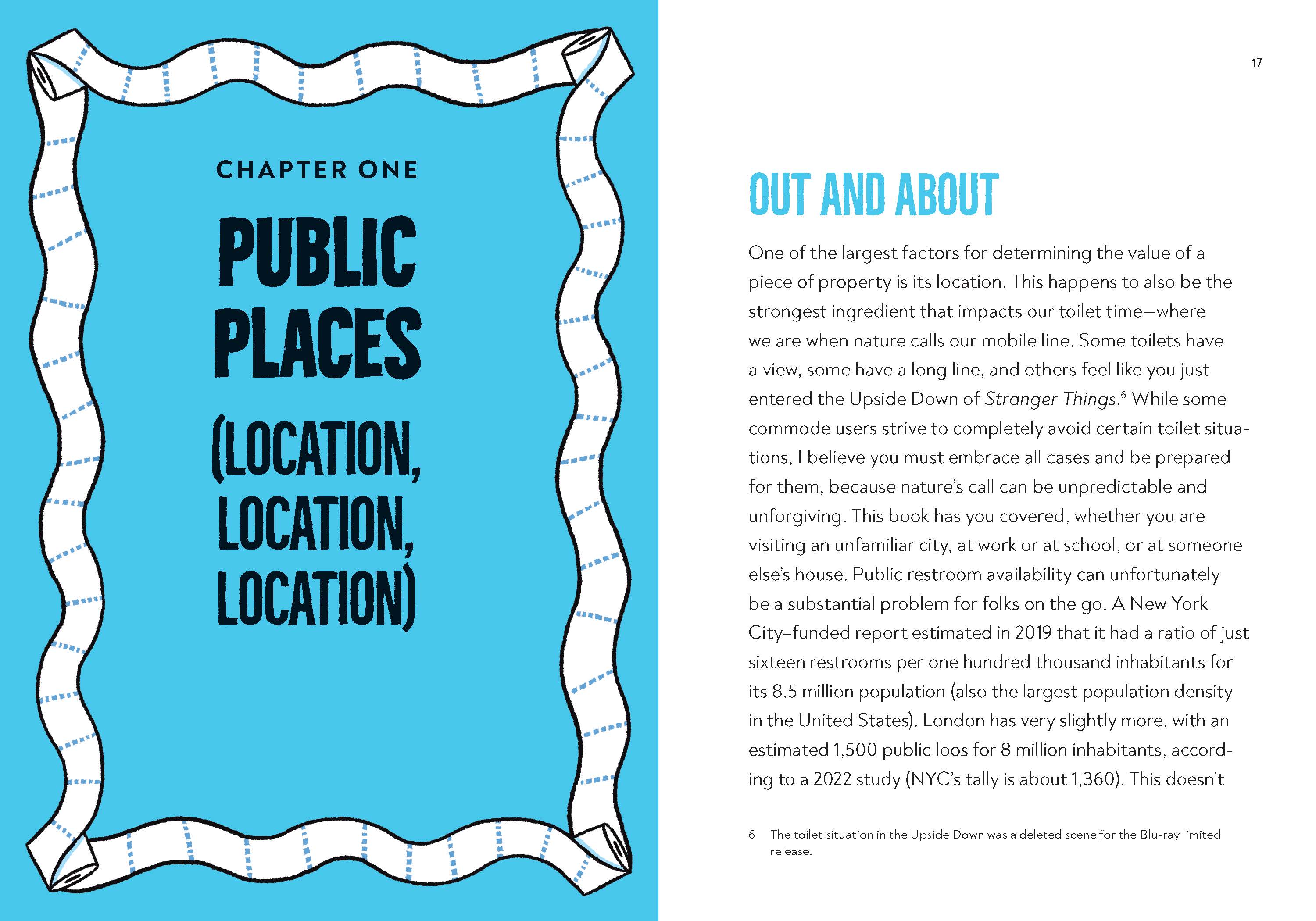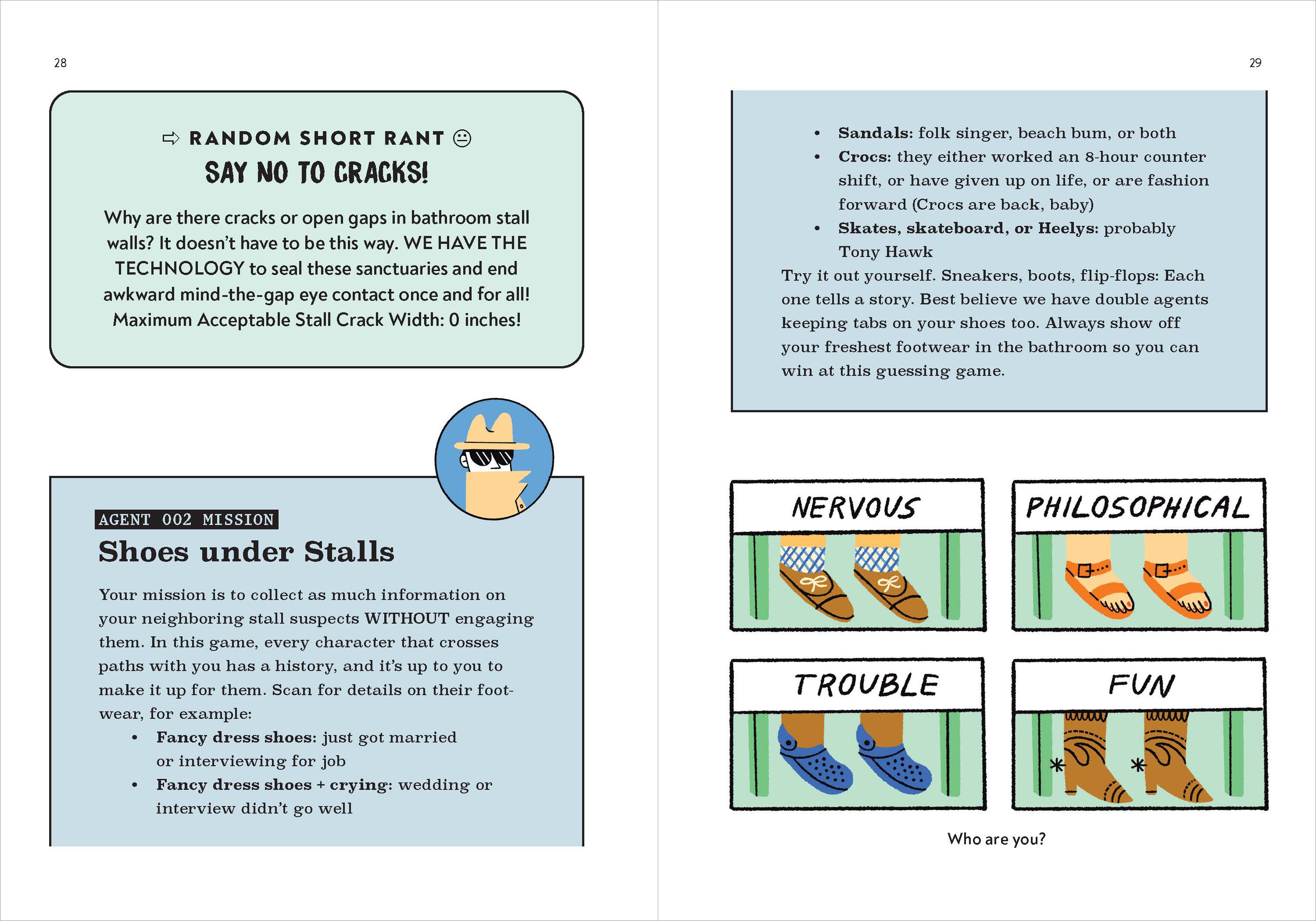We’ve all been there and will be back again. This very funny and actually useful guide will help you make your time in the loo more comfortable, entertaining, and even fun. Out-and-about advice includes finding and navigating public restrooms, strategies for pit stops at school, in the office, or at other people’s houses, as well as special circumstances (in a porta-potty, in the woods, in outer space). Tips for optimizing your throne room at home feature playlists, dream décor, scent-sory suggestions, get-things-moving exercises, and toilet tech explorations (flush into the future). Also featuring a Things to Do While You Poo activities section, sidebar trivia from Plungie the Plunger, and reader missions to accomplish from Agent 002, this is the must-have companion for anyone’s time behind closed doors.