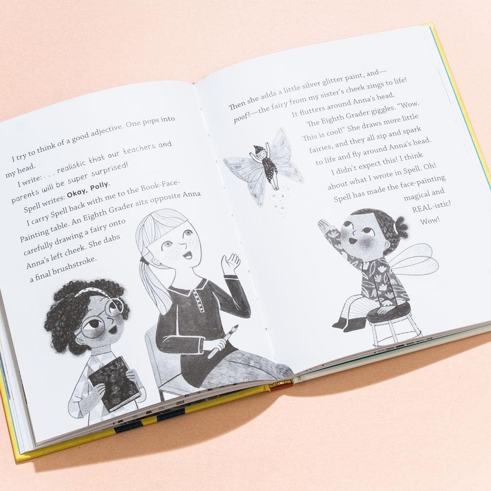 Polly and her magic book, Spell, have all kinds of adventures together because whatever Polly writes in Spell comes true! But when Polly and Spell join forces to make the school fair super spectacular, they quickly discover that what you write and what you mean are not always the same. Filled with the familiar details of home and school, but with a sprinkling of magic, this book is just right for fans of Ivy + Bean, Judy Moody, and Dory Fantasmagory, as well for aspiring writers, who, just like Polly, know the magic of stories.
