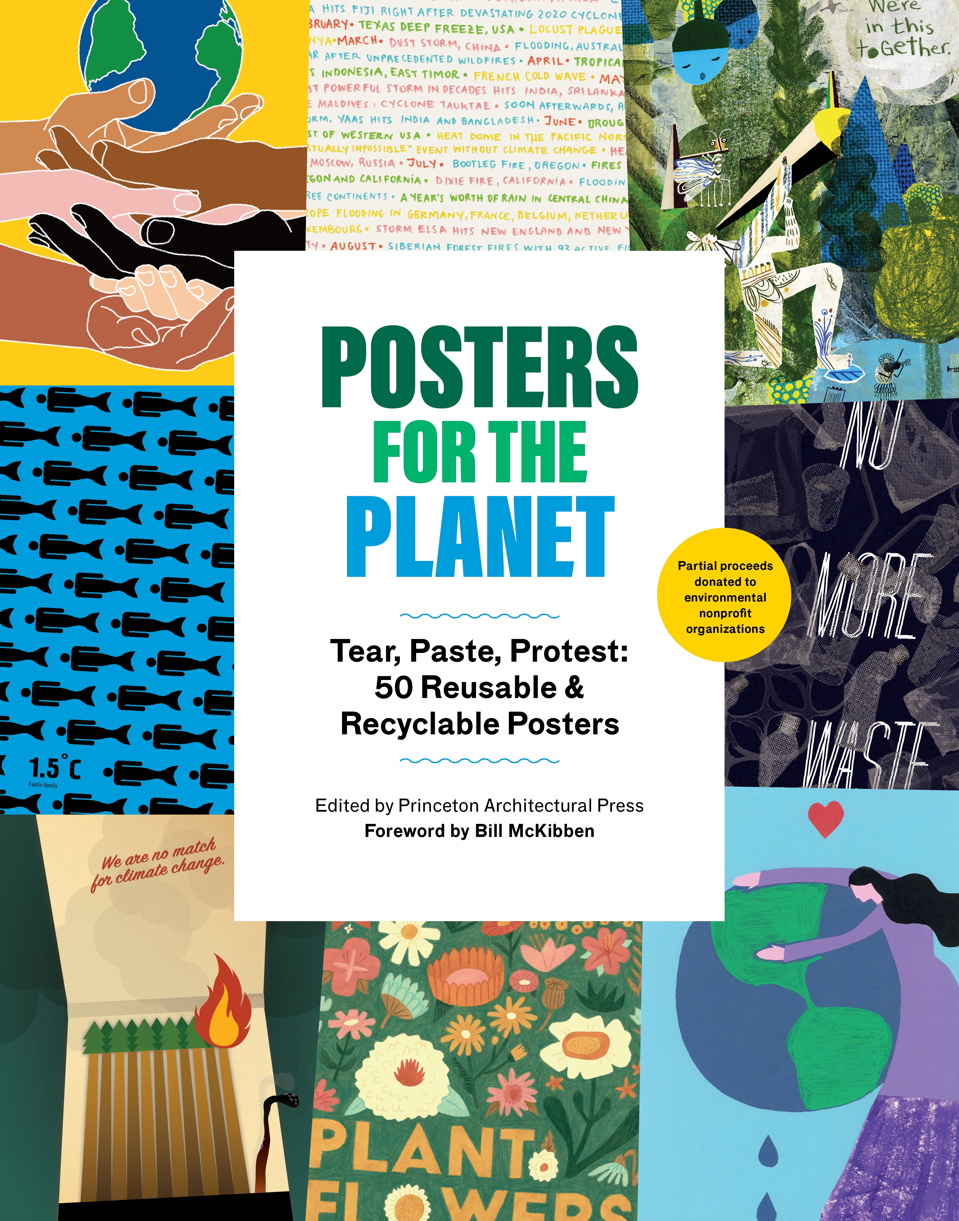 50 tear-out posters, each designed by a unique artist or designer, that convey the urgency of needing to take action to help prevent climate change.