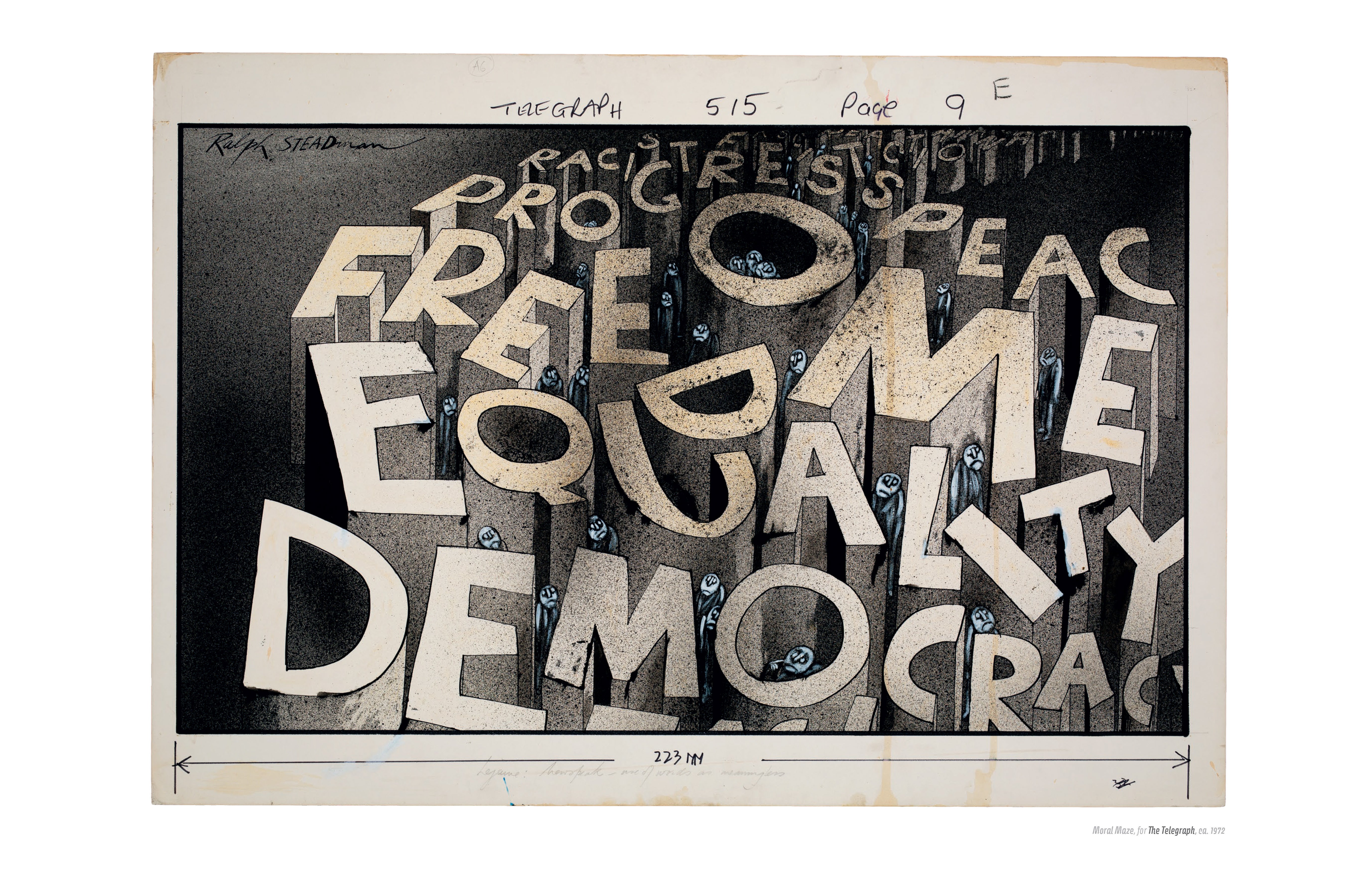 Along with his signature ink-splattered style, Steadman is known for his diverse body of work, including satirical political cartoons and book illustrations for classics such as George Orwell's Animal Farm and his award-winning version of Alice in Wonderland.