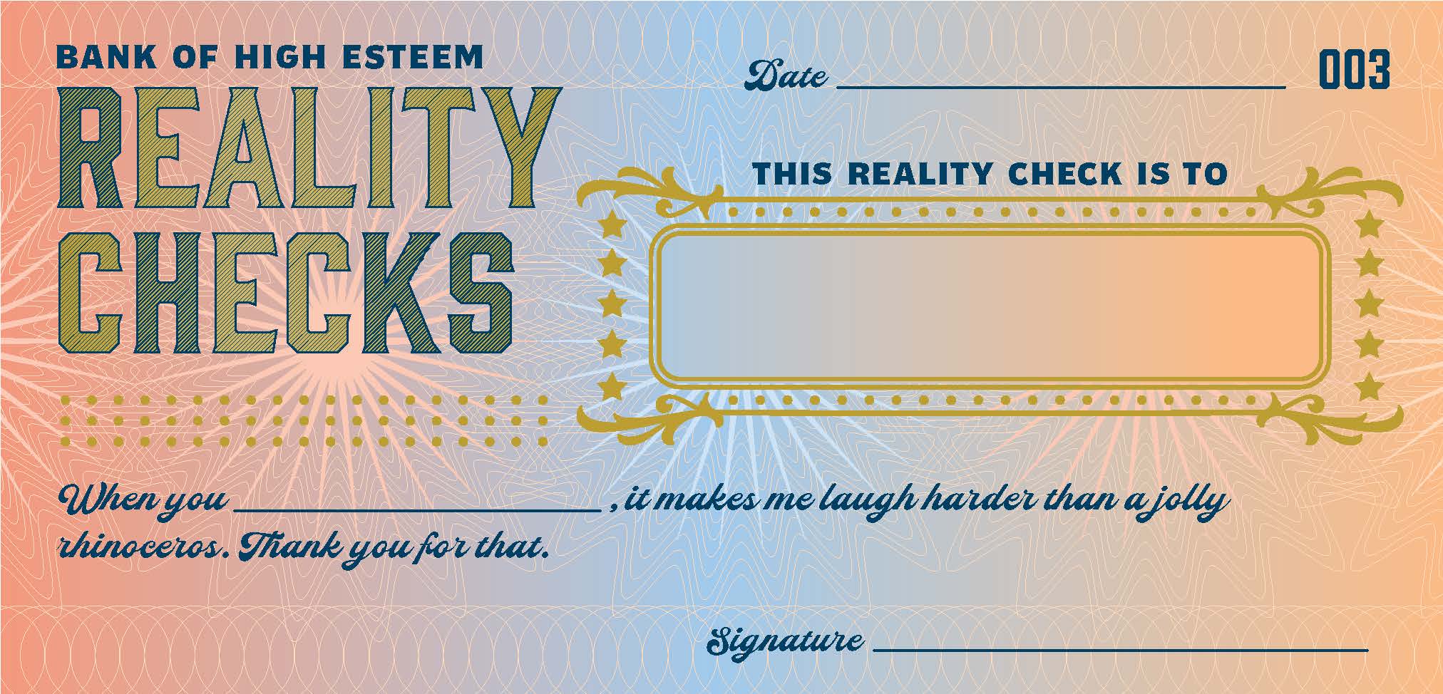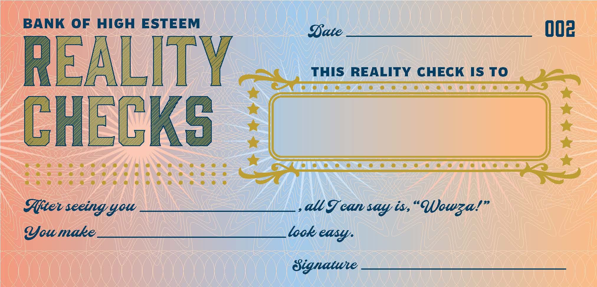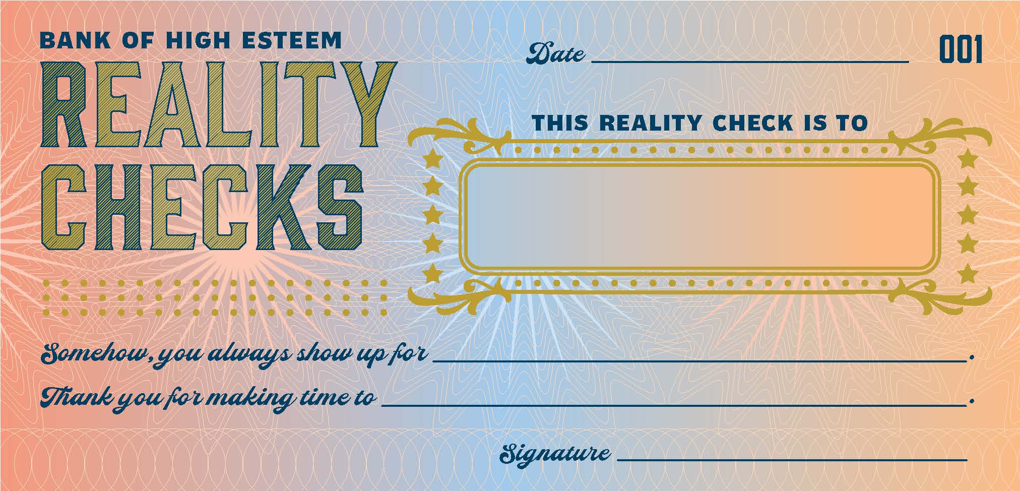 UNIQUE ALL-OCCASION GIFT: Messages on these removable "reality checks" range from general appreciation to specific celebrations. Each check is a thoughtful and distinctive but super-easy way to express gratitude, congratulations, or general encouragement to loved ones, friends, family, or coworkers.SWEET BUT WITH A SENSE OF HUMOR: These reality checks are a fun way to spread a little positivity and kindness. They are sweet but not saccharine in tone, making them easy to give to family, friends, coworkers, teachers, or anyone who could use a little boost.