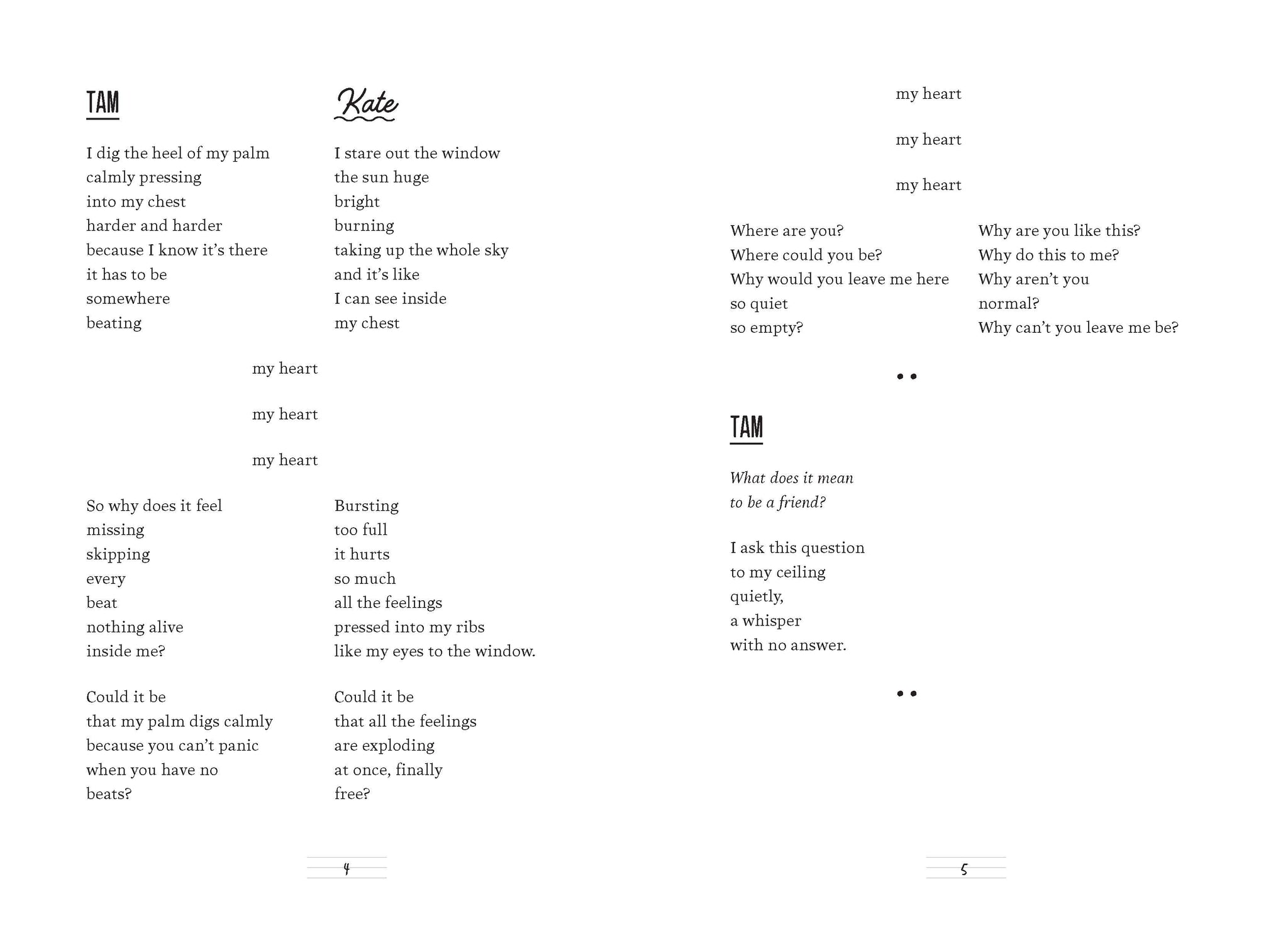 "The free-verse narration is totally accessible, flowing quick and clear, and Holt plays with form, beautifully highlighting the parallel internal journeys, often achieving something akin to a musical duet. Ultimately, this is a . . . moving story well-told." —Booklist, starred review
