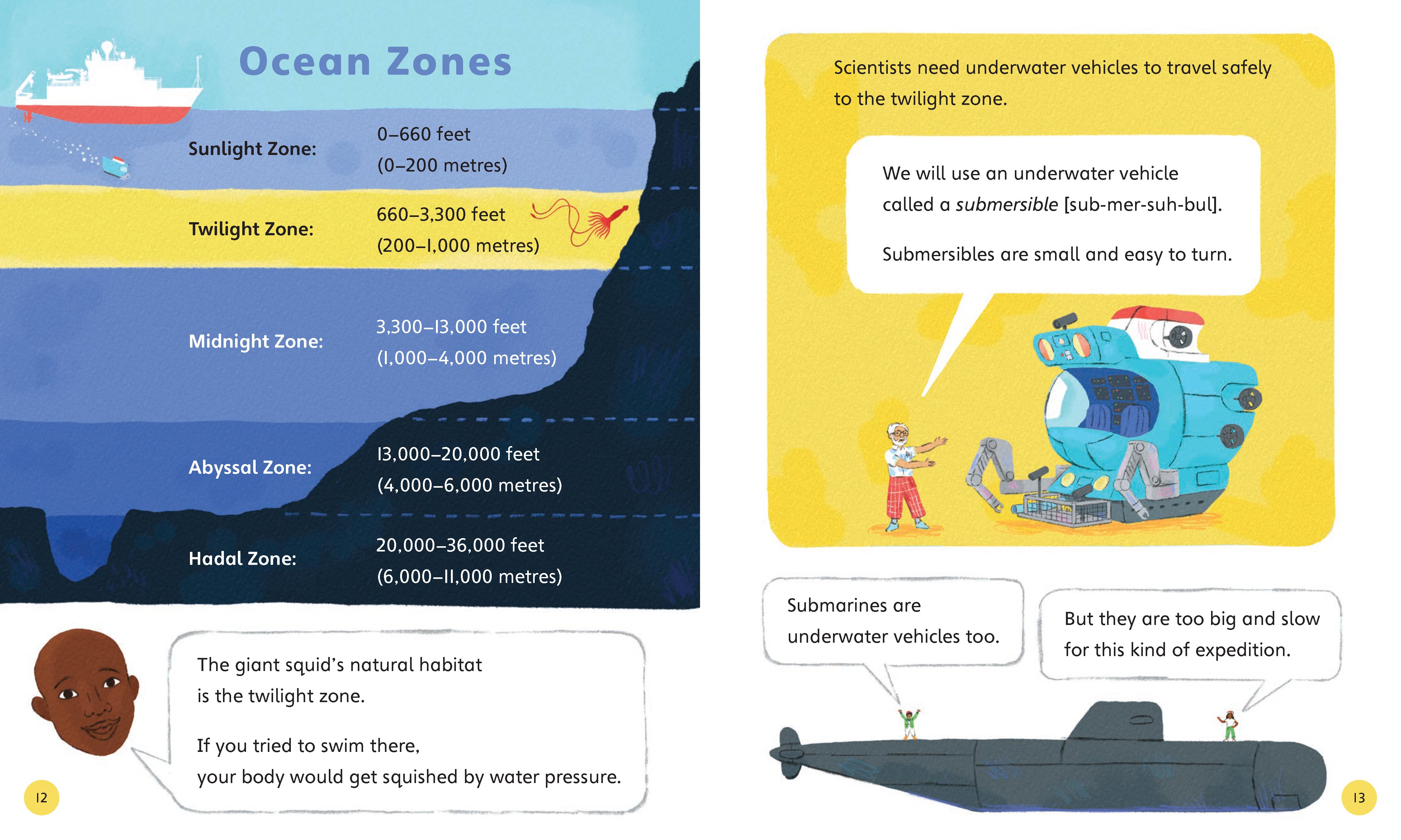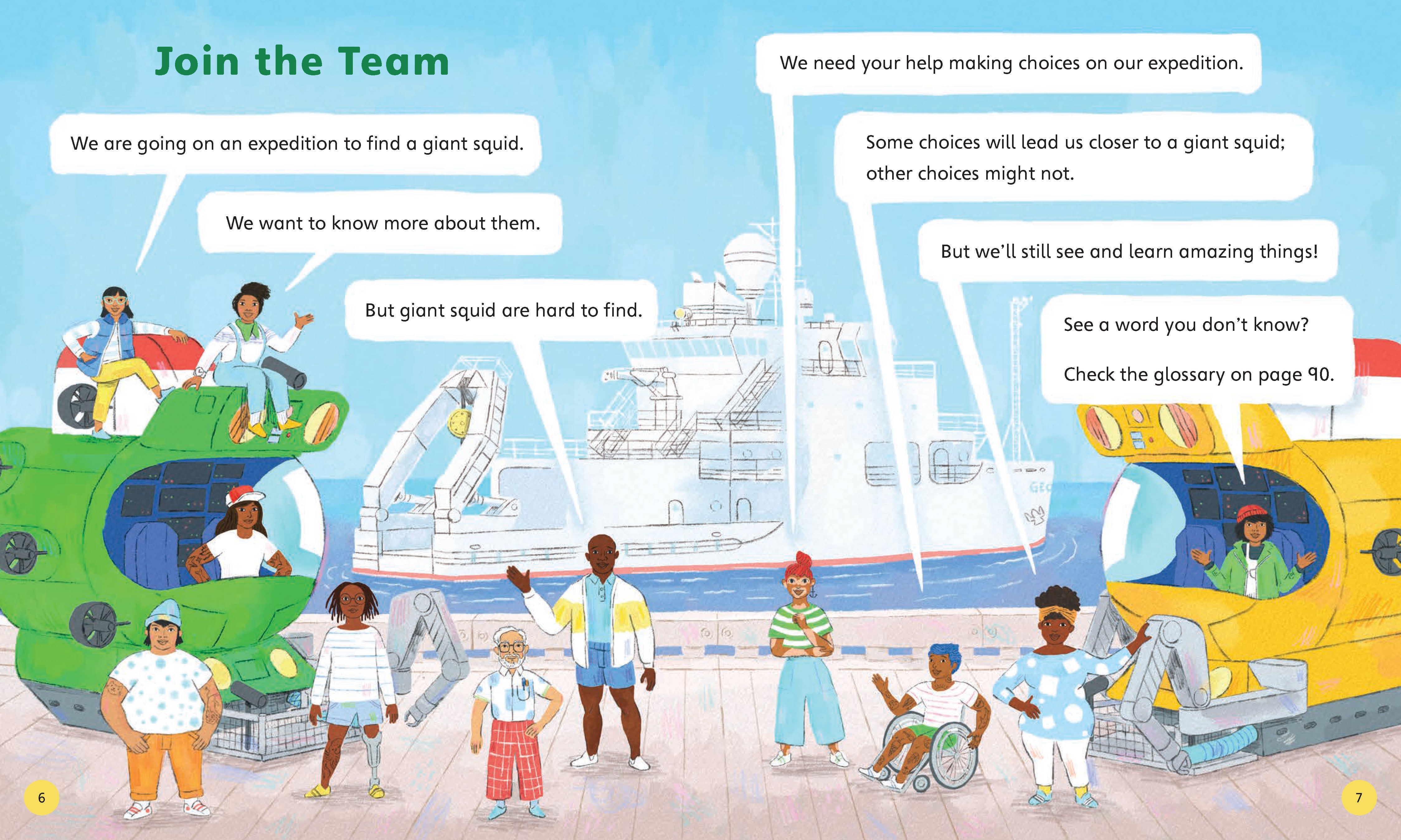 An exciting ocean-themed choose-your-path STEM adventure for emerging readers! Take a journey to the ocean's twilight zone in Search for a Giant Squid ! An exciting mixture of action and non action, this choose-your-own-adventure-style story allows readers to take on the mantle of a teuthologist looking for a giant squid in its natural habitat. Once readers pick their submersible, pilot, and dive site, the adventure begins!